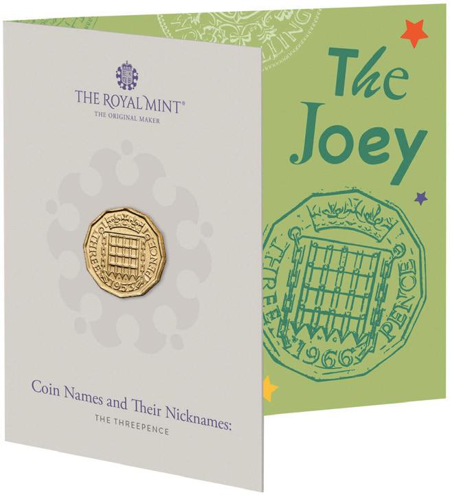 had nicknames. Rather than simply known by denomination, the florin, shilling, sixpence and threepence were affectionately known as the two bob, bob, tanner and joey. Official issues of Britain’s Royal Mint, each pack