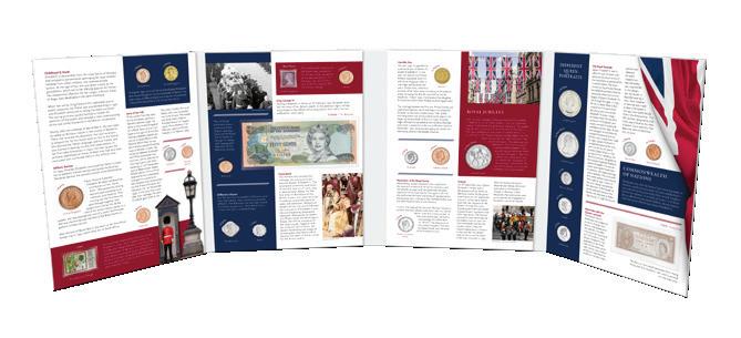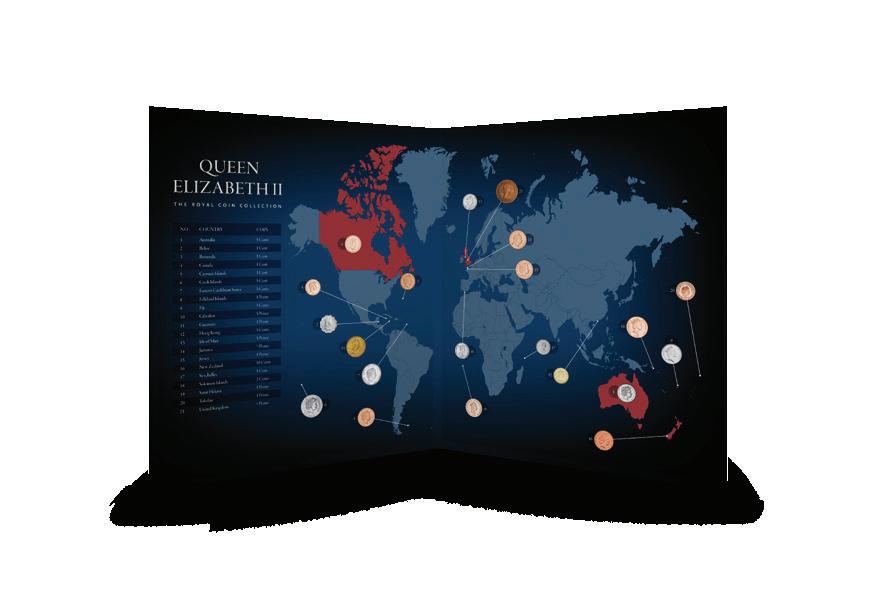 Queen Elizabeth II Royal 21-Coin Collection Very Fine-Uncirculated 25173 $10995 Queen Elizabeth II – The Beginning of an Era Collection Very Fine-Uncirculated 32846 $239 Great Britain Queen Elizabeth II Memorial Crown Pair 32448 $99 Queen Elizabeth II – The Royal Collection Book 32845 $249 Queen Elizabeth II Tribute Gold-plated Commemorative 31607 $2995 The Coins & Banknotes of Queen Elizabeth II 36-page Booklet 30685 $995 Ø22.05mm Ø40mm