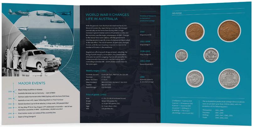 Complete with an informative booklet incorporating a Certificate, the collection comprises nine genuine Australian pennies. Bearing the portrait of wartime monarch, King
