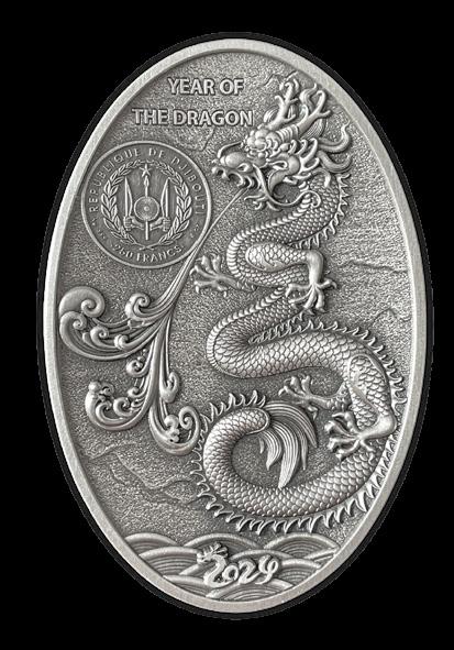 Honouring the auspicious Dragon Egg, this Djibouti legal tender coin is struck to High Relief quality from 5oz of 99.9% silver! Exclusive, the mintage of this huge 50mm x 70mm tribute is a lucky 488!