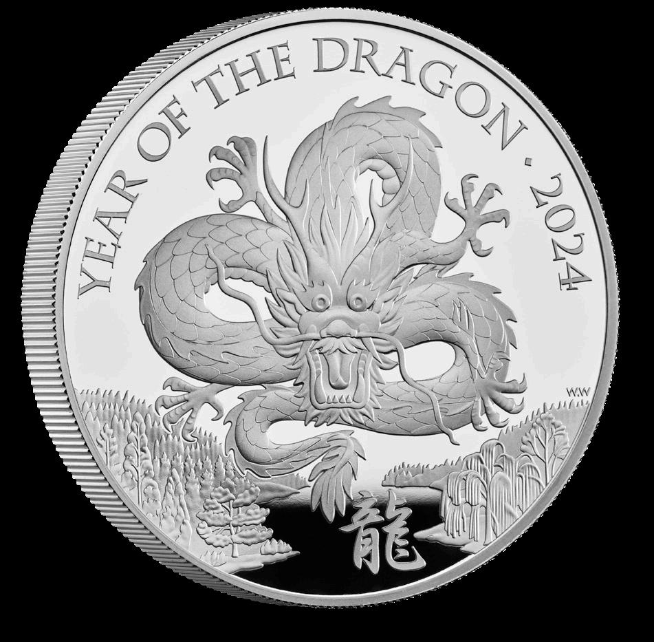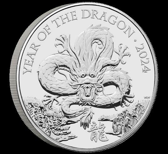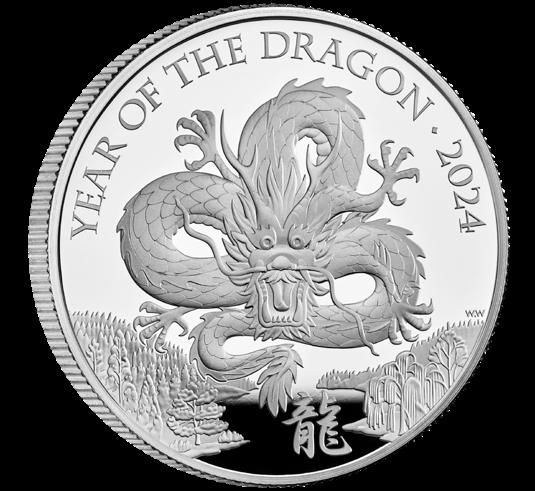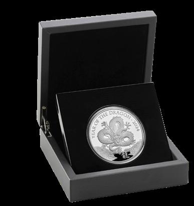 Notable for the limited edition of just 288, this huge 65mm coin is struck from a mighty 5oz of 99.9% silver! Year of the Dragon 2024 £10