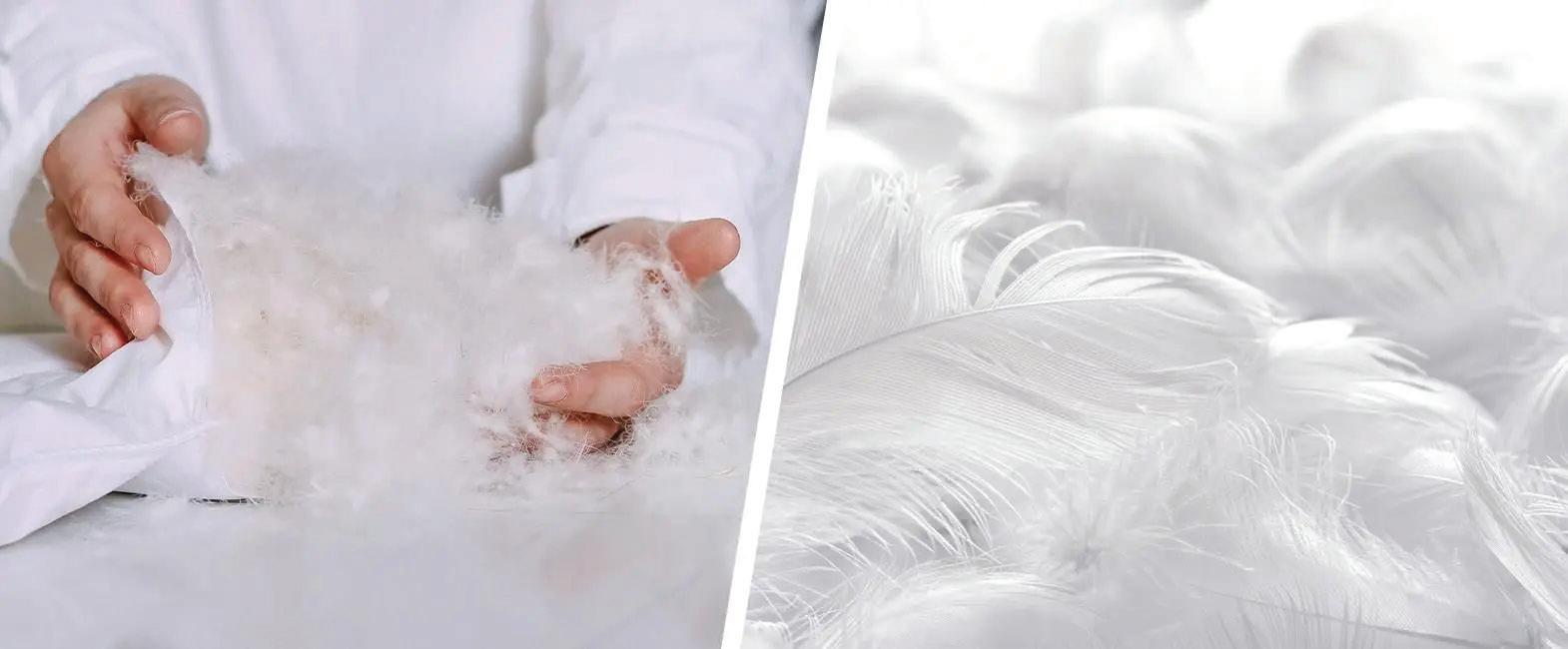 Although all birds have feathers and down, virtually all down and feathers come from geese and ducks. Generally, the larger the bird and the colder the climate in which they live, the larger the down cluster and the higher the ll power of the down. us, goosedown typically has larger/better clusters. High-quality down can be found in both ducks and geese. But duck down and feathers are less expensive than goose down and feathers for three primary reasons: