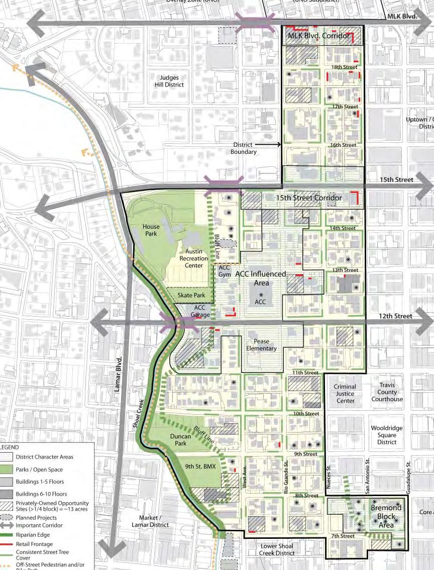 58 Waller Creek, Core/Waterfront and Northwest district plans: p:// p.ci.aus n.tx.us/DowntownAus nPlan/adopted_mp_hires10_0712.pdf p:// p.ci.aus n.tx.us/DowntownAus nPlan/adopted_ds_hires10_0712.pdf