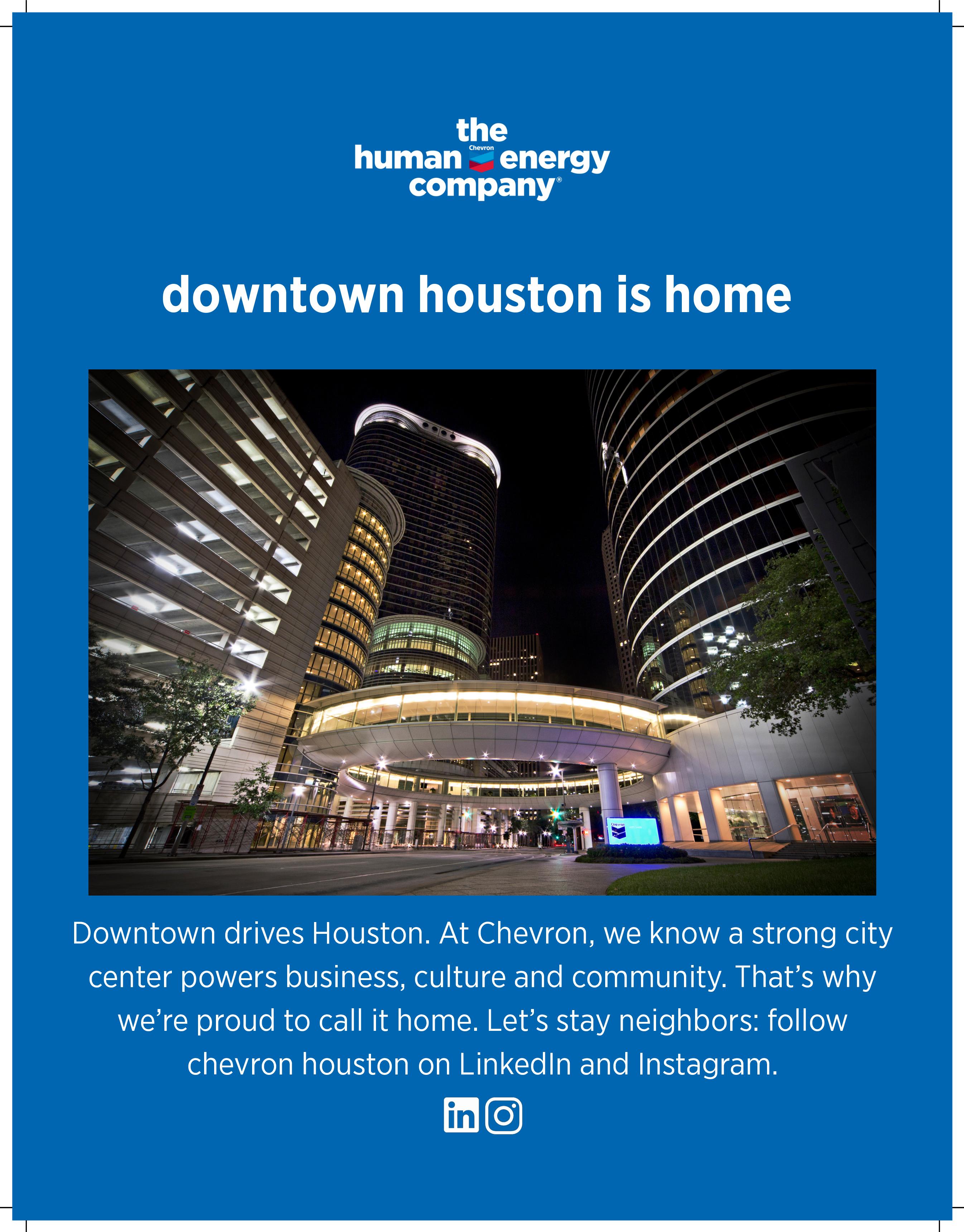 Downtown Houston+ stewards the vision of Downtown as a center of global commerce and local culture and Houston’s heart for opportunity, excitement and joy. Downtown Houston+ represents a family of aligned entities – Central Houston, Inc., Houston Downtown Management District and Downtown Redevelopment Authority – which advance a shared mission to champion and enhance Downtown Houston as a connected and thriving place for everyone. For more information, visit downtownhouston.org