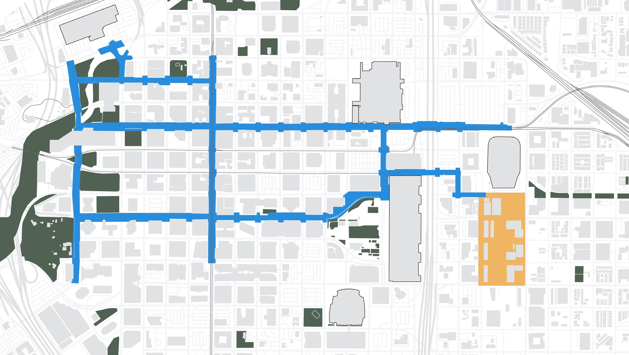 Pedestrians need safe, comfortable, intuitive, and fun ways to navigate to, from, and within Downtown – ensuring their experience is positive from arrival to departure.