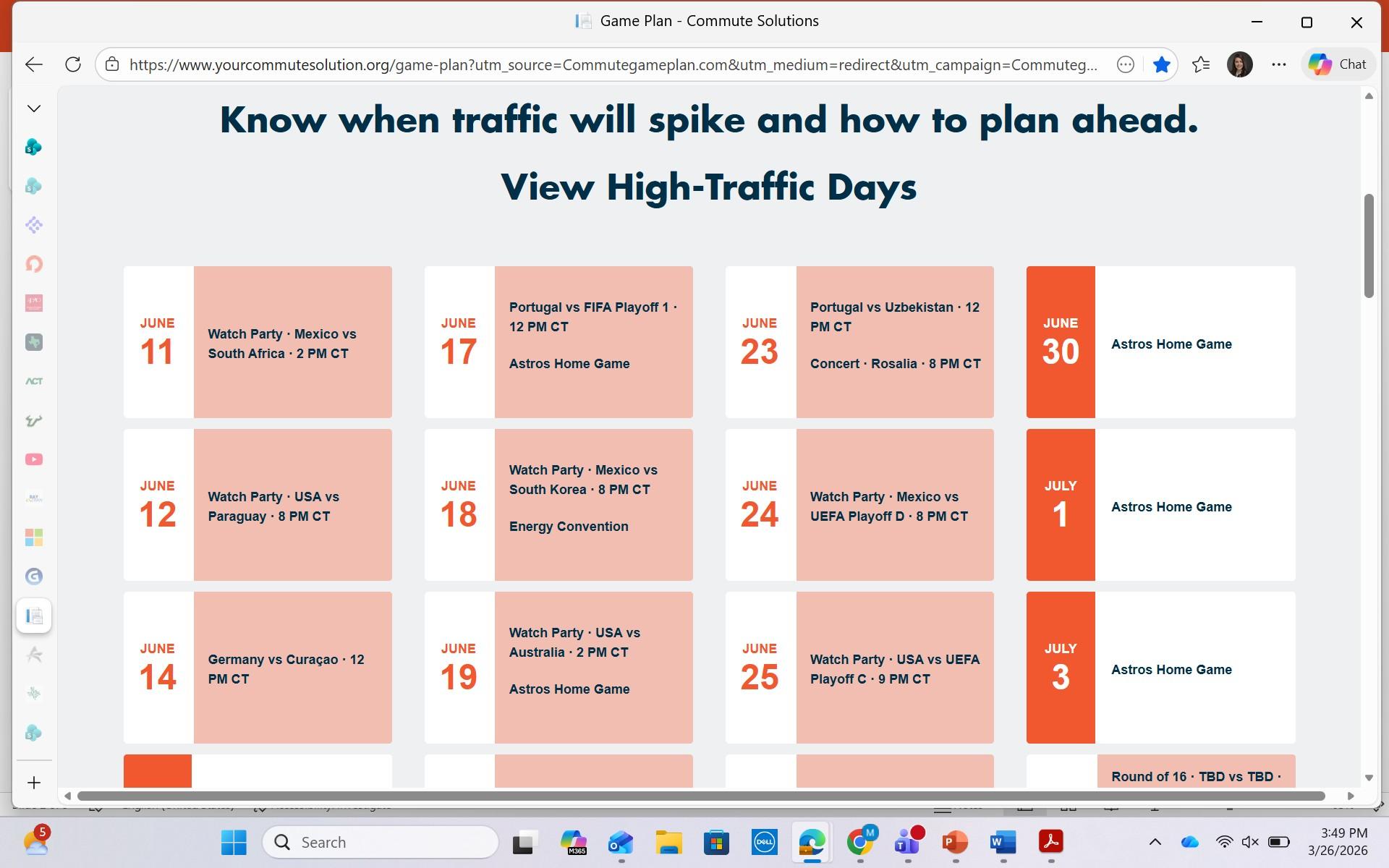 Modeled Game Day Travel Times