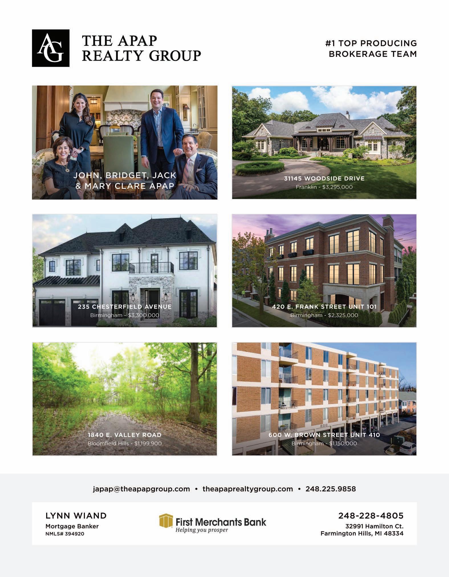 TUSHAR VAKHARIYA + RENEE LOSSIA ACHO TVA + RLA tushar@tvahomes.com renee@rlarealtors.com 712 E Gunn Rd., Oakland Township $2,750,000 1840 Cass Lake Front Rd, Keego Harbor $2,999,000 2322 Cherrylawn Ave, Bloomfield Twp $1,899,000