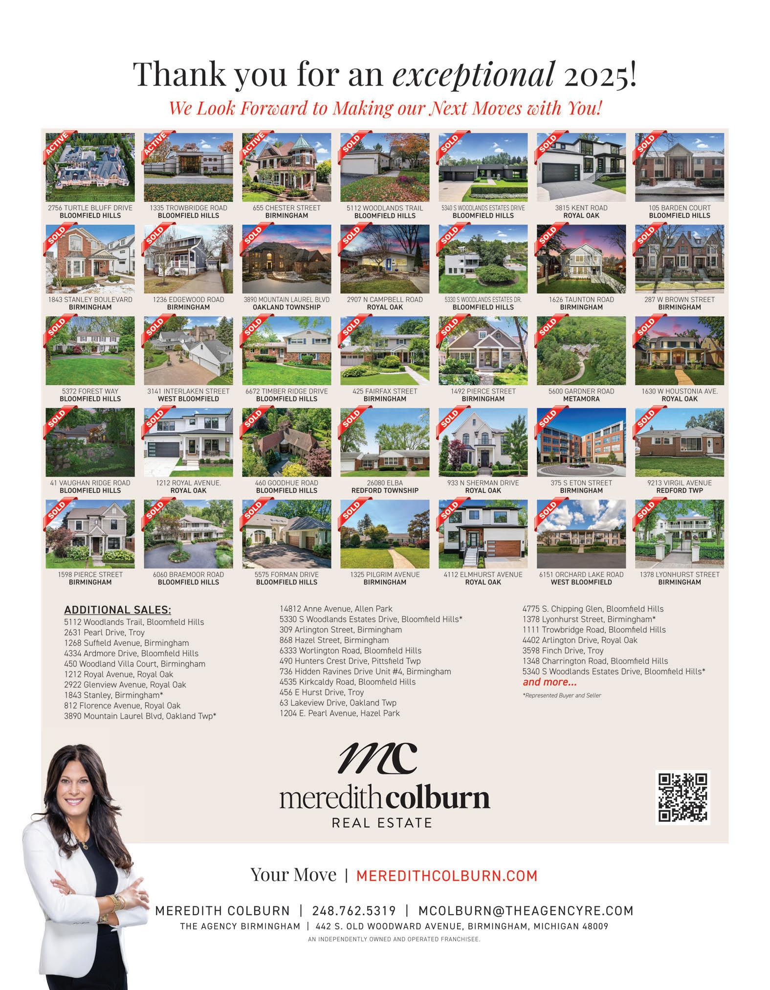 From our family to yours, here’s to new beginnings and your health, happiness and prosperity in 2026! This holiday season, we celebrate the joy of home, the warmth of community, and the lasting connections we’ve built together. At DG Realty Group - Michigan’s #1 Luxury Agency and a globally ranked Top 100 Sotheby’s International Realty team - our success in 2025 is thanks to you, our valued clients and partners.
