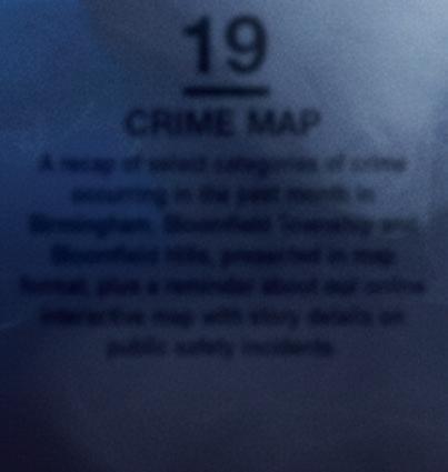 A recap of select categories of crime occurring in the past month in Birmingham, Bloomfield Township and Bloomfield Hills, presented in map format, plus a reminder about our online interactive map with story details on public safety incidents.