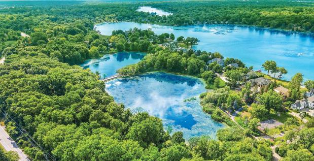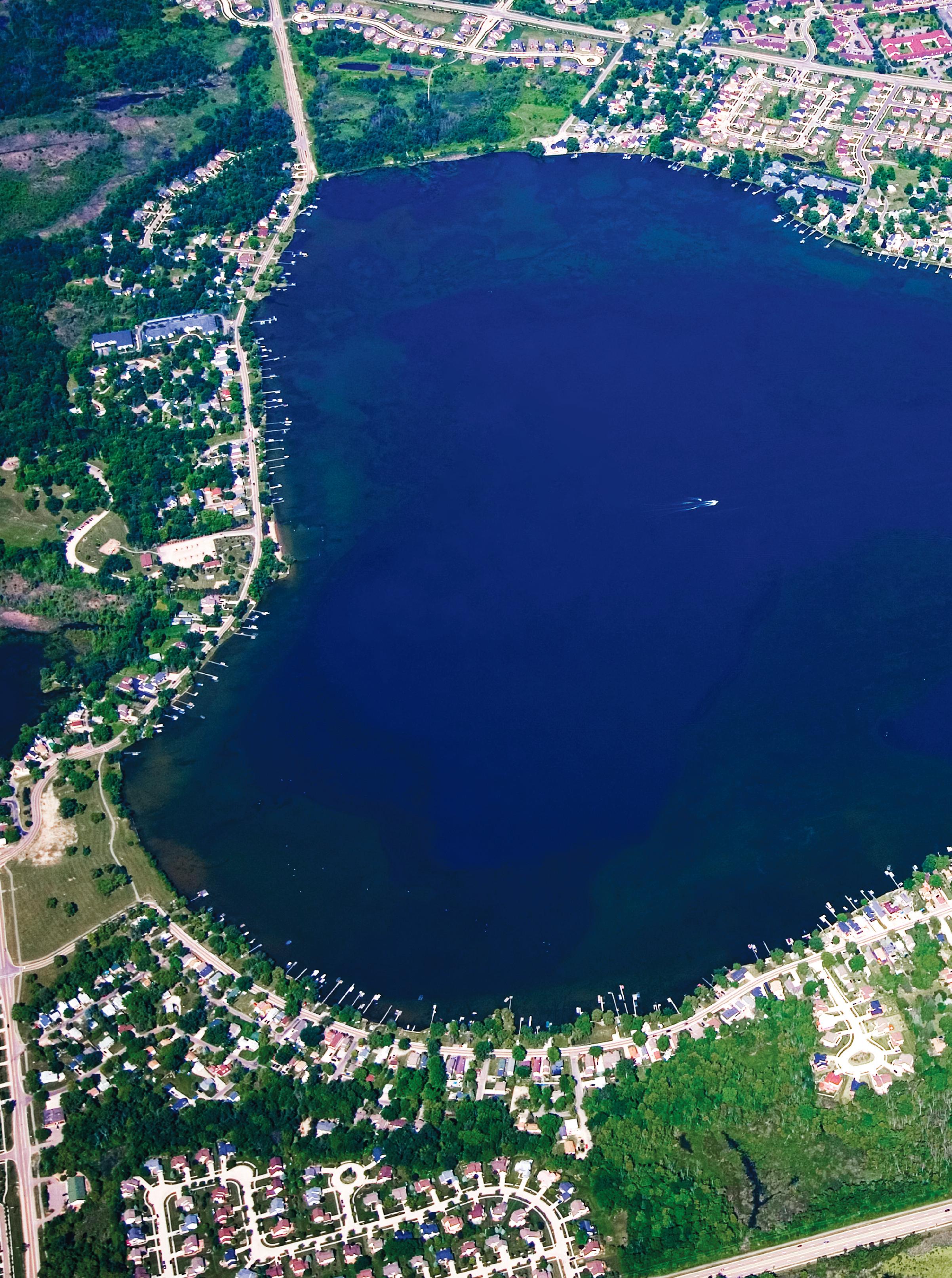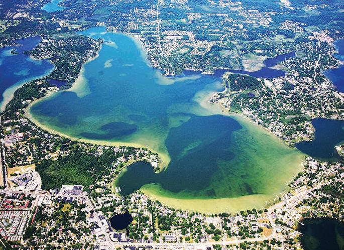 An aerial view of Walled Lake, which straddles both the cities of Walled Lake and Novi.