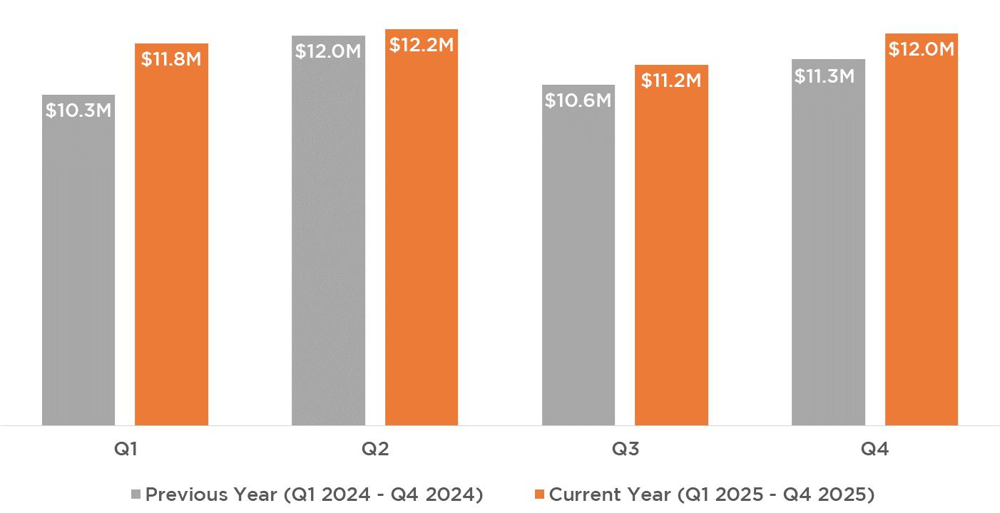 $12M Average Monthly Hotel Room Revenue Q4*