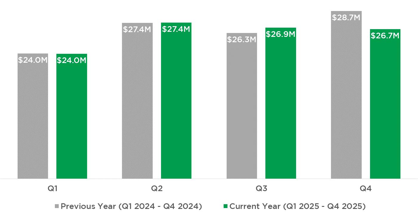 Monthly Food & Beverage Sales in Q41* $28.7 Million in Q4 2024
