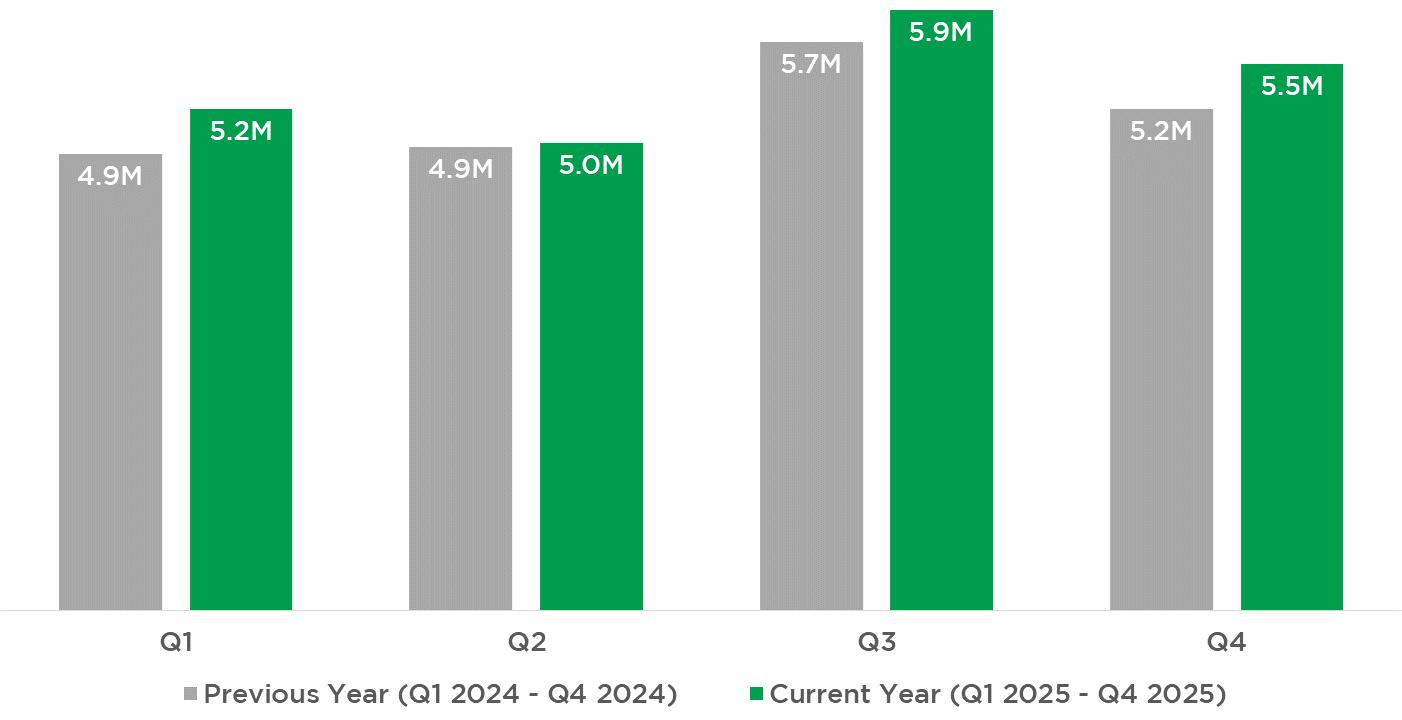 +6.2% INCREASE Q4 2025 AVERAGE MONTHLY HOTEL ROOM REVENUE YEAR OVER YEAR1*