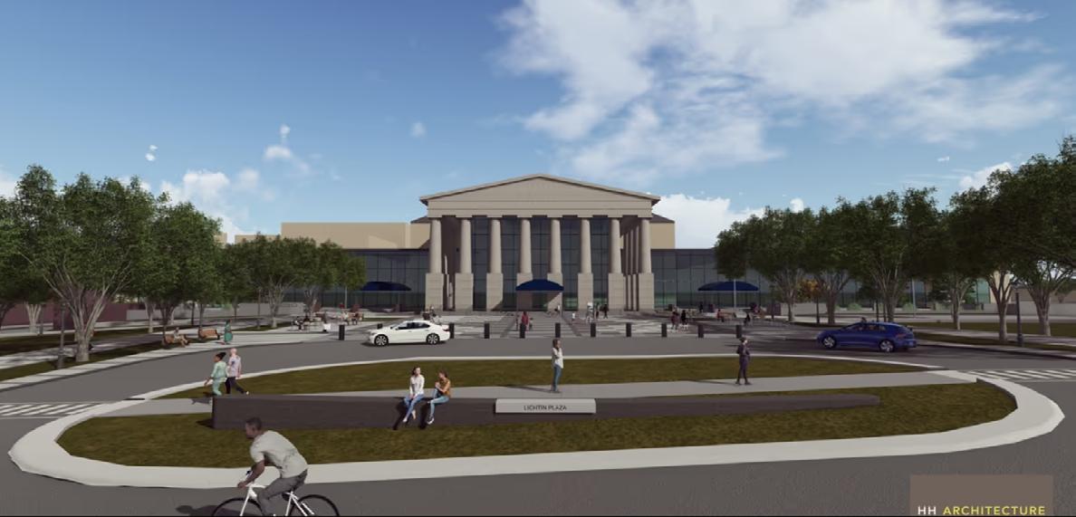 Lichtin Plaza, located in front of the Martin Marietta Center for the Performing Arts, is undergoing a transformation. Planned improvements include a dedicated drop off lane, new wheelchair accessible ramps, expanded greenspace, and flexible public space designed to support events, circulation, and everyday use.