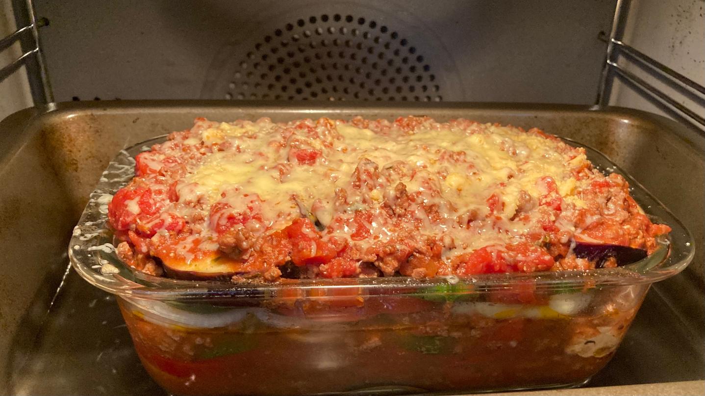 Taste a small portion of lasagne after cooking time making sure eggplant is soft and cooked through, depending on the thickness of slices and oven temperature may need a little more