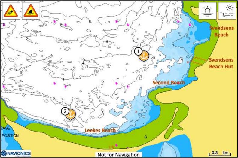 2.Checktheweatherforecastevery morning. If a westerly wind is coming and you are anchored out in the harbour, plan on moving to the westerly anchorage early; some of the fronts kick off with a solid westerly punch that makes most of the harbour shockingly rolly polly.