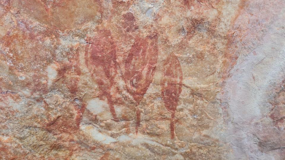 Laying on your back of the conveniently placed large flat rock, you look upwards at the numerous other rock art on display, including paintings of turtles, squid like and human figures with animal heads.
