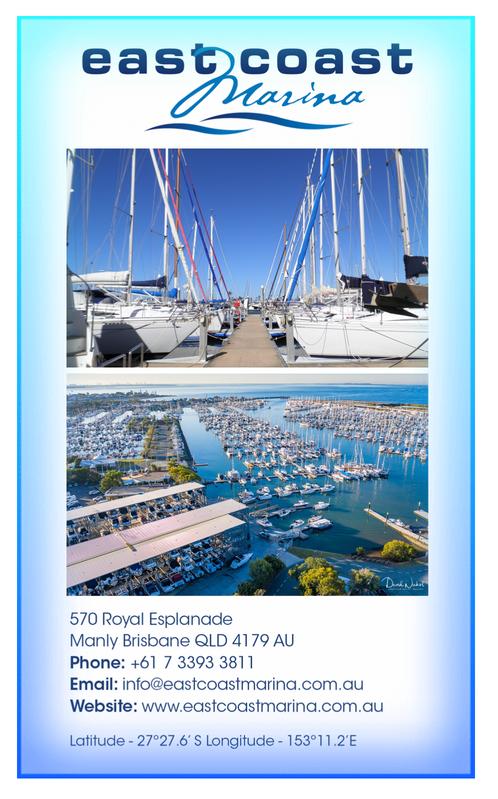 Located less than 10nm to the south of the Brisbane river mouth Manly Boat Harbour is the perfect base for visiting yachts and East Coast Marina has long been a favourite of the international yachting community. DOWN UNDER RALLY MEMBERS OFFER. *15% off casual marina berth rates *subject to availability at time of booking and confirmation of current DUR membership EAST COAST MARINA Phone: +61 7 3393 3811 Email: info@eastcoastmarina.com.au Location: Latitude…27º27.6′ S Longitude…153º11.2′E VISIT OUR WEBSITE www.eastcoastmarina.com.au AvarietyofpublictransportoptionsthatwilltakeyoudirectlytoBrisbaneCityandtheBrisbane InternationalAirportarewithinwalkingdistanceofthemarina TheManlyVillageisonlyashortwalkaway,offeringagrocerystore,postoffice,newsagency, chemist,coffeeshops,restaurantsandmore. MarketsareonsomeSaturdaysandeverySunday. EastCoastMarina,ManlyBoatHarbour,Brisbane, Australiaoffer330securewaterberths, cateringforboatsupto18m.