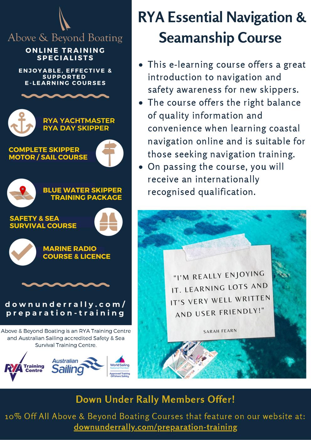Down Under Rally Members Offer! Get 10% Off All Above & Beyond Boating Courses that feature on our website. VIEW COURSES HERE