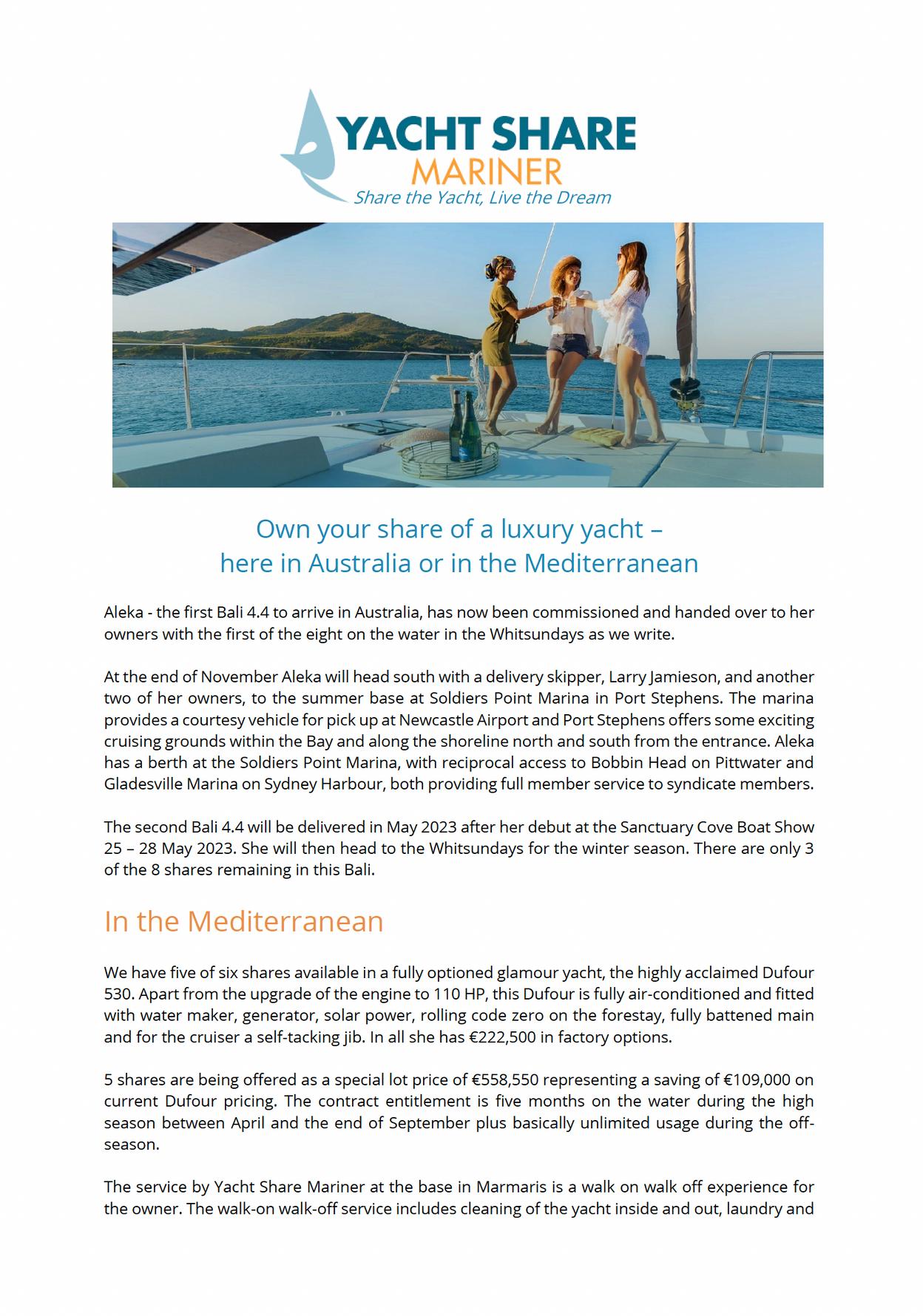 Being on the harbour in Sydney during the summer also provides the opportunity to have a front row seat to some iconic events, including the start of the Sydney To Hobart Yacht Race, New Year's Eve & the Australia Day celebrations