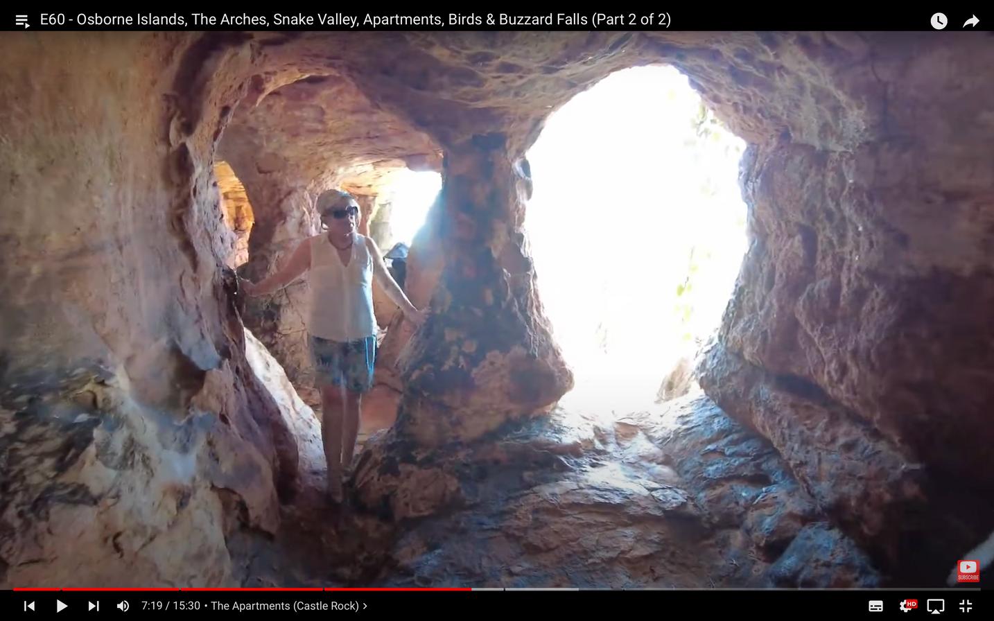 TheApartmentsisahuge,erodedcavesystembestdescribedbyagridarrayofcolumnsmaking asquarepatternofinterwovenpaths.Thisisanamazingplacetoexplore,butIcannotstressenough totakeatorch,asweonlyhadthelightsofourphones. Thecaveisquiteextensiveandextendstotheothersideofthehill.Itisalovelyplacetostopforlunch inthecoolshadewithapleasantcoolbreezeblowingthroughthecave,overlookingtheancient sandstonerocksandmangrovecreeksbelow