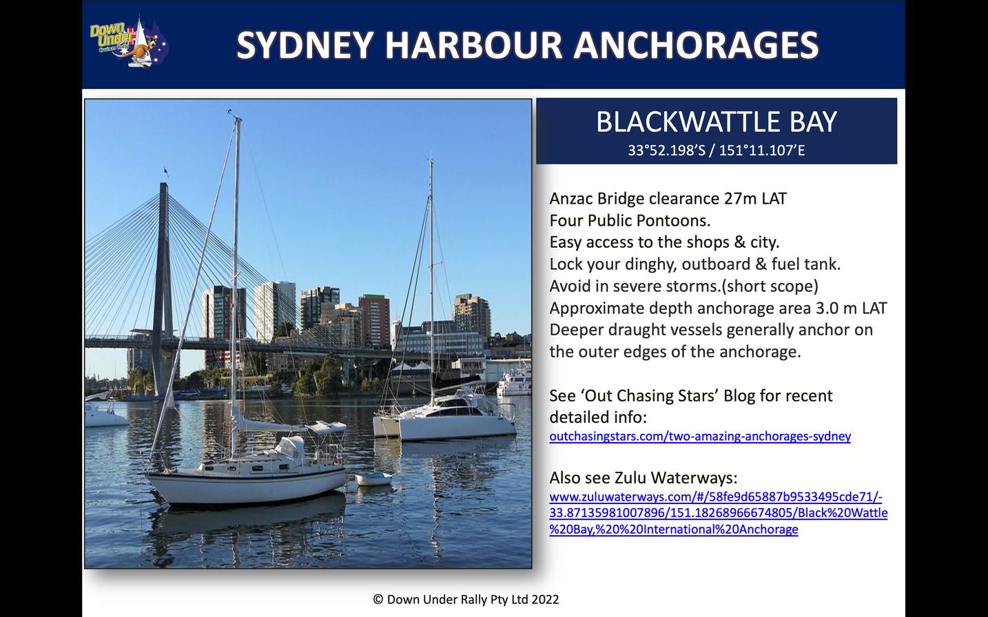 For those not familiar with Sydney Harbour you might be surprised to learn just how cruiser friendly it is with free courtesy moorings & free short-term berths for disposing of waste & rubbish, topping up water, picking up passengers and dinghy docks. For more info see: transport.nsw.gov.au/mapservices/proxy/boating destinations/map.html
