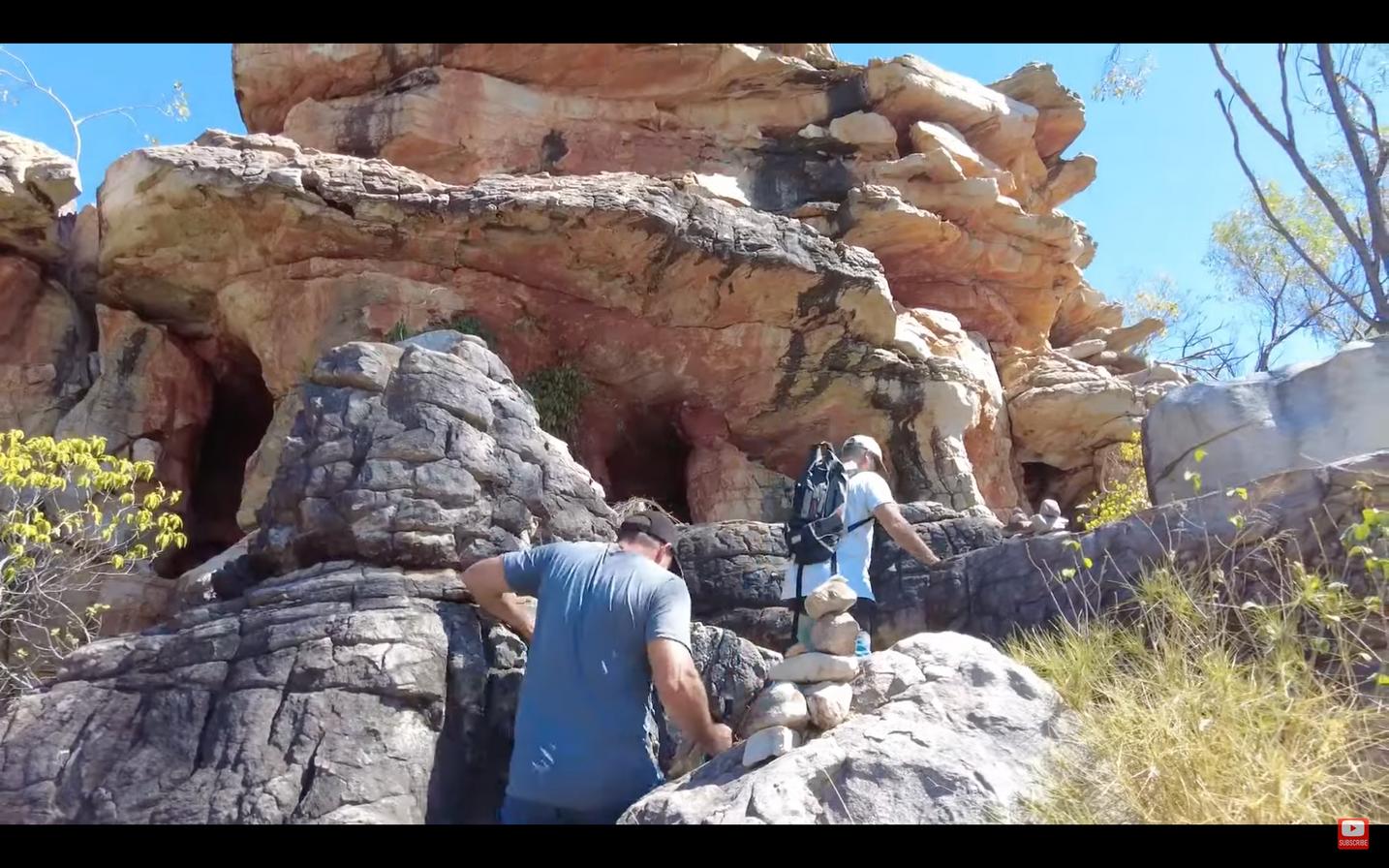 Pushing in through the soft mud, we got the tender close enough to step off onto the sandstone rocks. After walking through the spikey spinifex grass, we made our way up to the rock formation above.