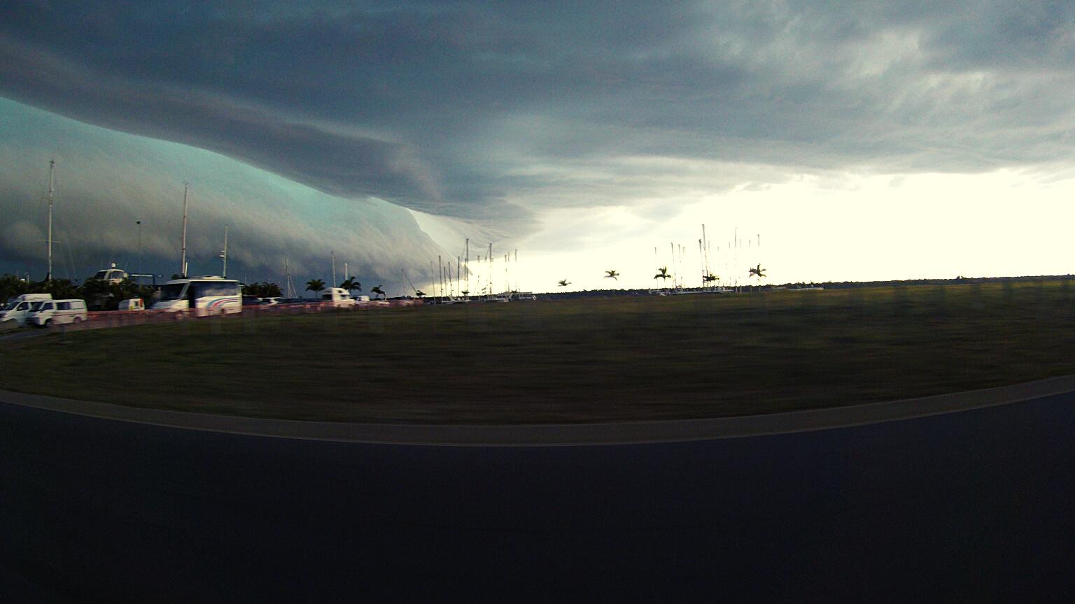 Despite the marina being only a five-minute drive from the hotel, it would be about 30 minutes before we were all aboard the courtesy buses supplied by the hotel & marina and on our way back to our boats that were berthed in the Bundaberg Port Marina. It was during the ride to the marina that we were confronted by one of the most ominous cloud formations I have ever seen.