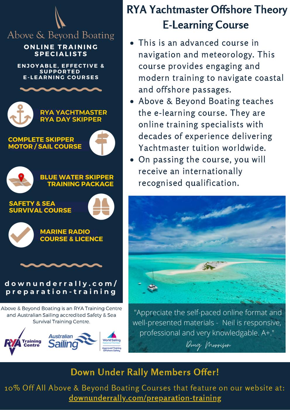 downunderrally.com/offshore cruising prep courses 1 YEAR FREE ACSESS FOR DOWN UNDER RALLY MEMBERS CLICK THE LINK OR SCAN THE QR CODE FOR MORE INFORMATION.