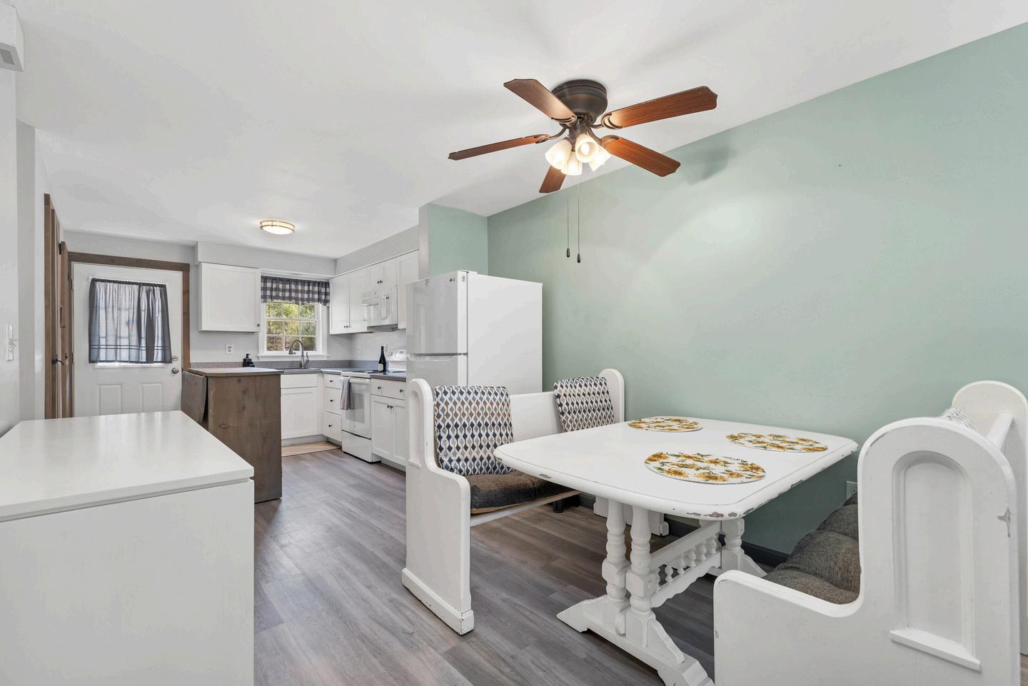 Welcome to Saco Pines in Conway, New Hampshire Recently renovated, this condo exudes charm and elegance throughout. Upon entering, you're greeted by a well-designed floor plan featuring a stylish kitchen with a handcrafted island, seamlessly flowing into the inviting living and dining areas, perfect for entertaining guests. Custom doors and trim add to the aesthetic appeal of the main level, which also includes a convenient half bath Step out onto the private deck from the living area and soak in the serene sights and sounds of the flowing river The bedrooms are generously sized and share a full bath, ensuring comfort and convenience. The finished walk-out basement offers versatility, serving as either a family room or additional bedroom, complete with a spacious extra bathroom French doors lead to a weatherproofed deck/patio area, ideal for outdoor gatherings and BBQs, extending to a lush meadow and granting access to the condo association beach. Conveniently located near popular ski destinations, offering skiing, mountain biking, and a summer concert series, this condo presents an ideal four-season retreat With easy access to North Conway and its abundance of amenities, this is a perfect getaway for outdoor enthusiasts and those seeking relaxation alike In 2025, the building was resided and the deck was repainted The living room also has a new electric fireplace/heater The unit is fully furnished, turn key/move in ready