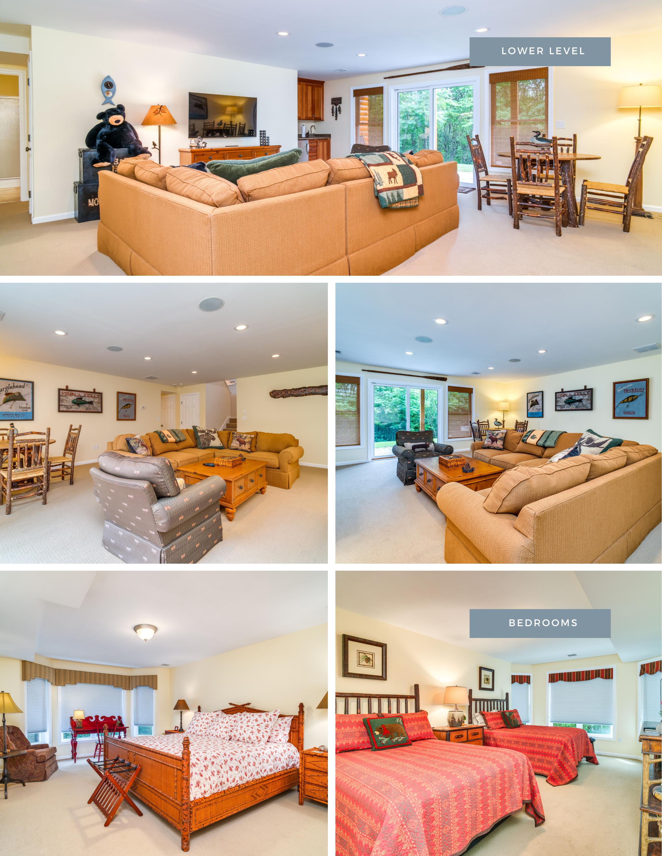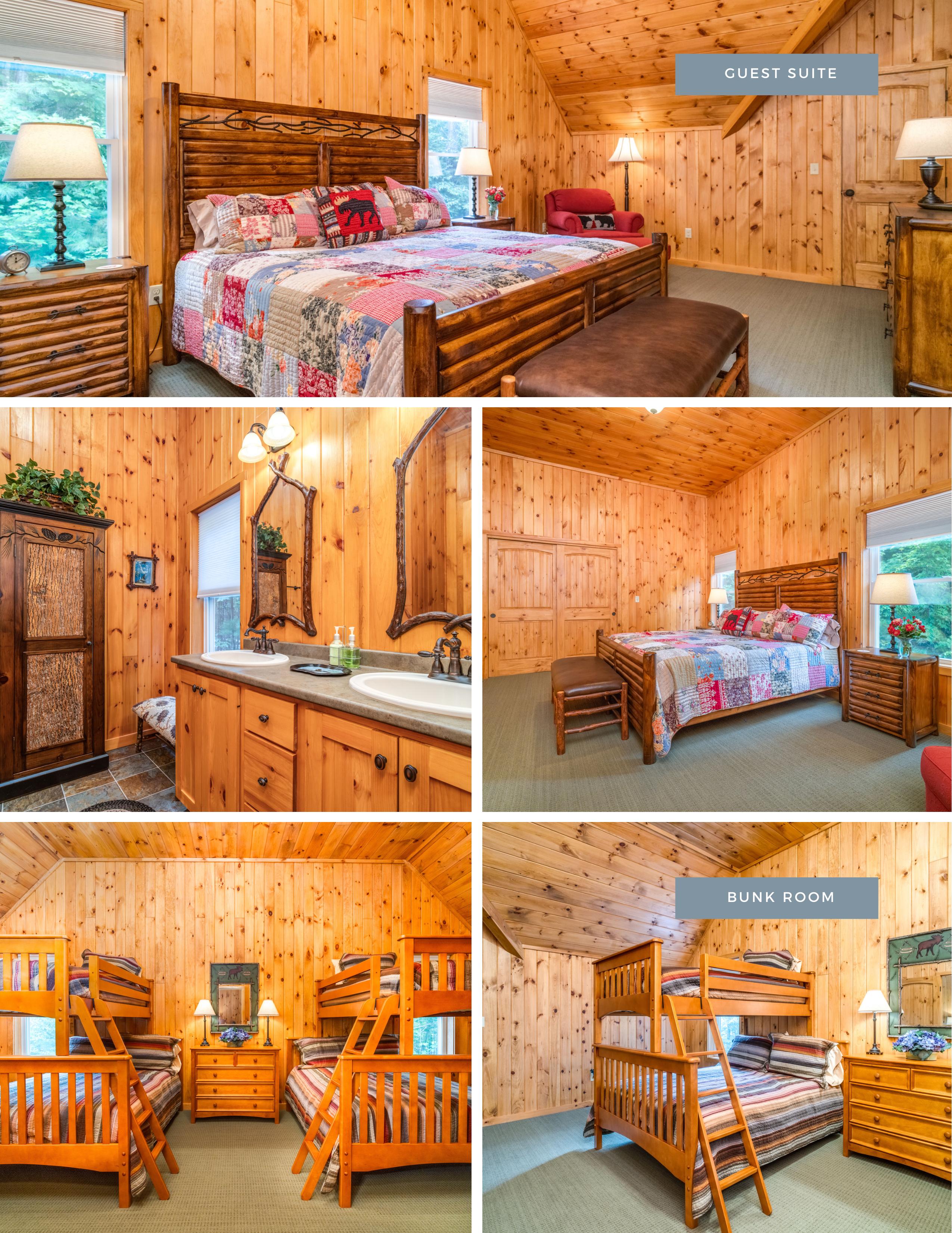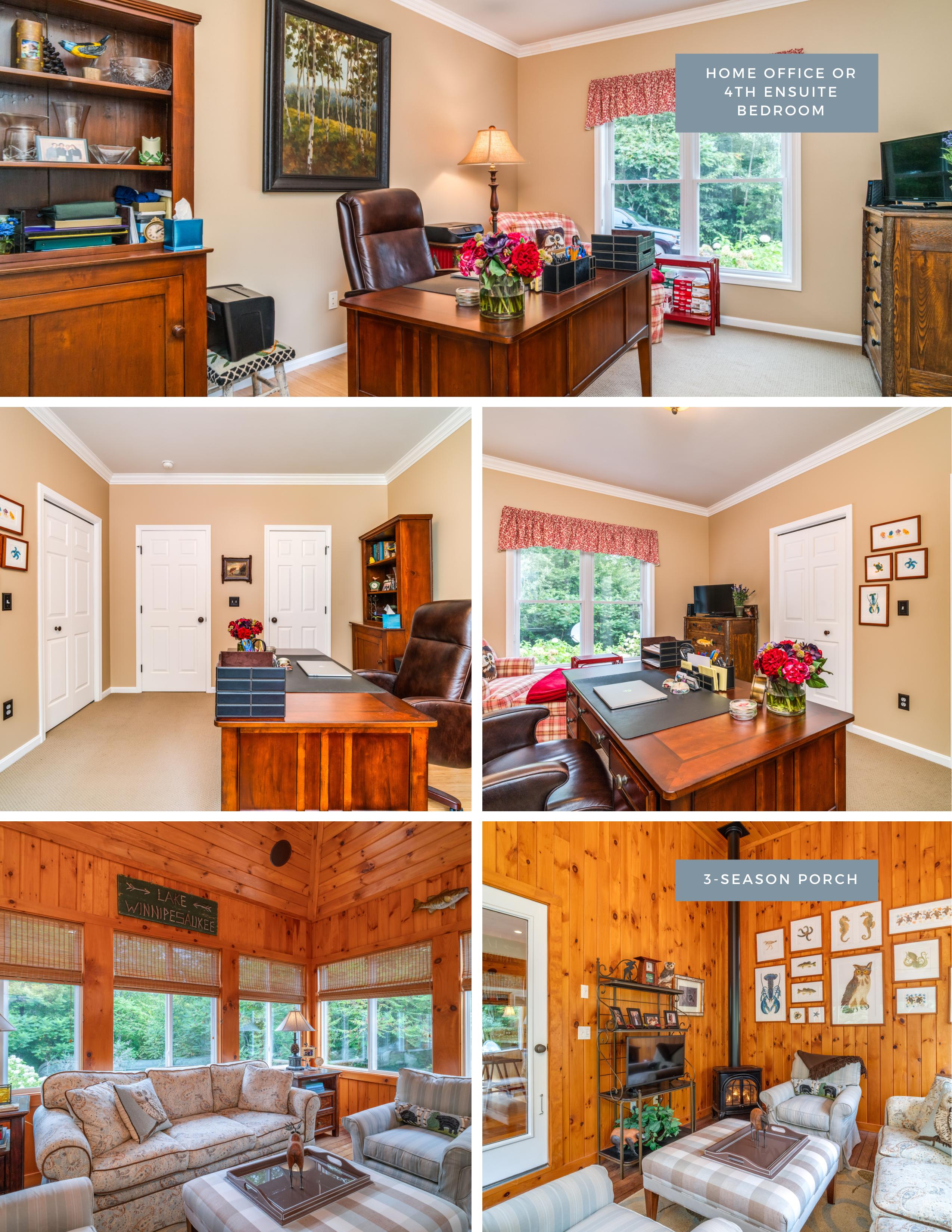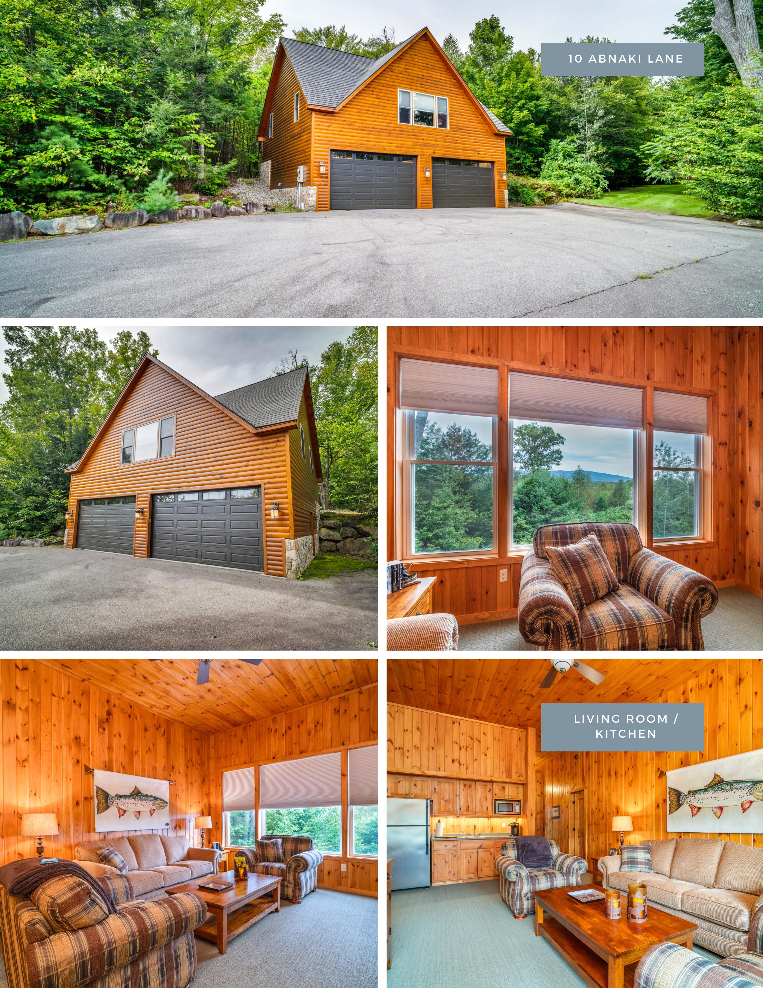 Welcome to Moose Manor. A private luxury log home estate, located in low-tax Moultonborough, nestled in the foothills of the Ossipee Mountains, on over 8 acres of land. The property consists of two separate lots, each with just over 4 acres of land. Three separate buildings: 19 Abnaki Lane, the main log home is a raised ranch for easy first-floor living. Open concept kitchen complete with Viking appliances, three-season porch, office, full walkout lower level with additional living room and two more ensuites. Next is a detached garage with bonus space ready to be finished above. 10 Abnaki lane, a guest house with an additional 2 bedrooms, sits above an oversized garage with 2 - 16' garage bays. The property is both professionally staged and furnished by Home Comfort and professionally landscaped.