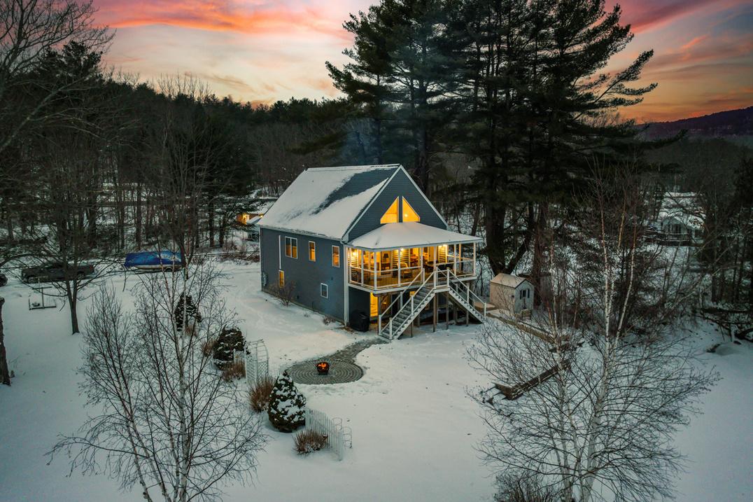 There's something nostalgic about lake houses in New Hampshirememories that will capture every season Steps from the water, you'll find a home that offers varying levels of living so that multiple generations of family can stay together comfortably The main floor has a sophisticated look & bright white palette that showcases it's high ceilings & wall of windows, offering front row seats to a waterview of watching the seasons change The main floor also includes laundry, a second bedroom, full bathroom, as well as the primary bedroom with private bath There are additional sleeping quarters, office space, or entertainment rooms on the upper floor A two-car garage with direct entry, a kitchenette, bath, guest room, and sliding glass doors leading to the gradual waterfront are found below the main level Outside a deck, patio, and level yard set you up for any activity The landscape surrounds you with the allure of lakes region, & endless recreational options. With a year-round floating dock, be ready to go as soon as boating season starts Paddle boarding, kayaking, and swimming is enjoyed in a quiet area of waterfront without sacrificing easy access to the wide lake Built in 2016 with thoughtful upgrades that include mini split climate control & a whole house generator Just pick the date & start living like others vacation Within 90 minutes of Boston, & a variety of restaurants & shopping nearby this property will not make you balance waterfront living & convenience