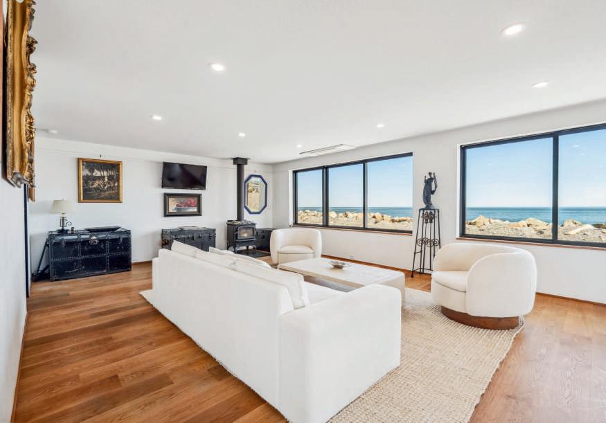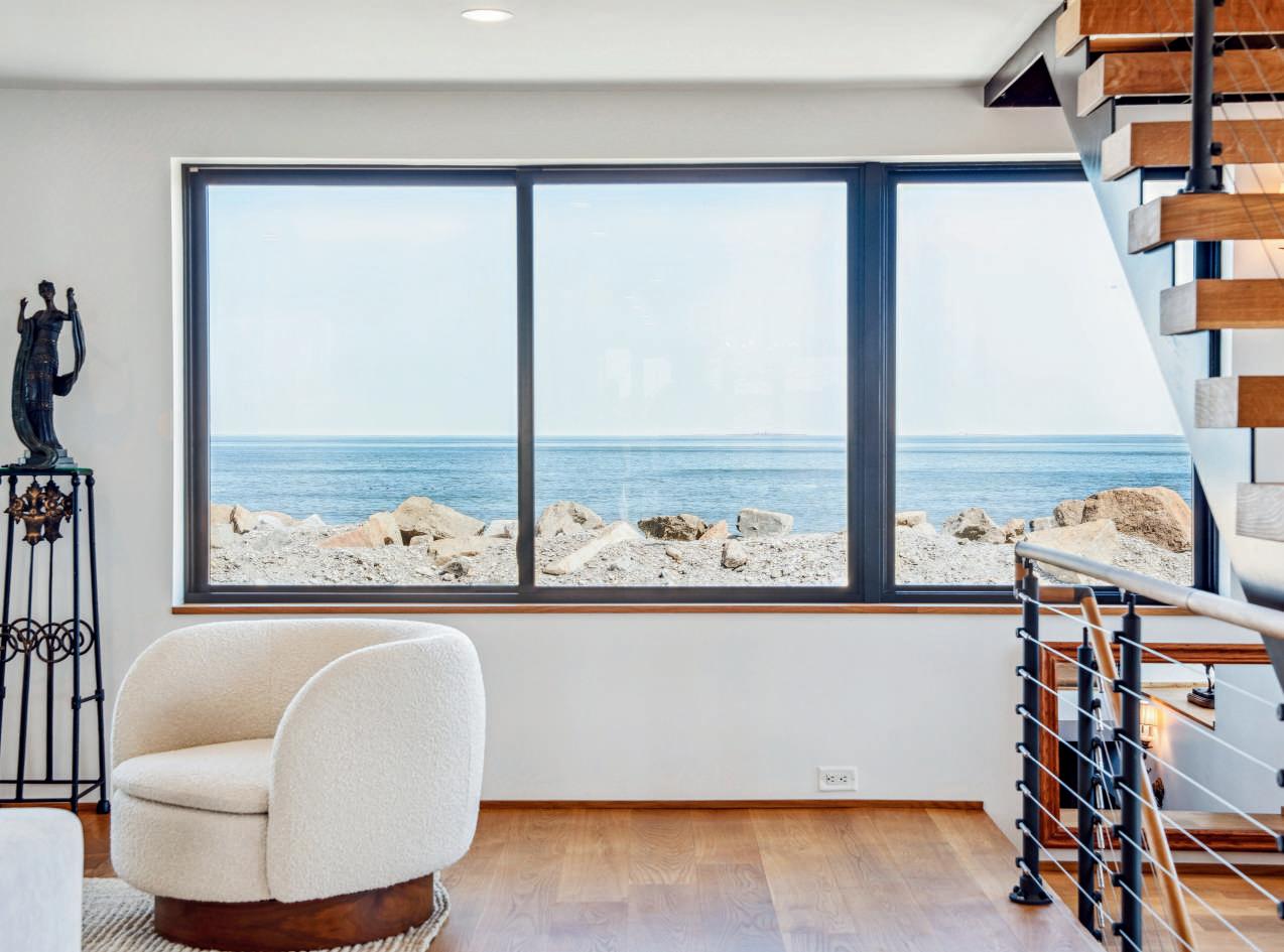 Enjoy breathtaking sunrises and ocean views of Foss Beach through dramatic picture windows.