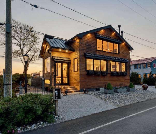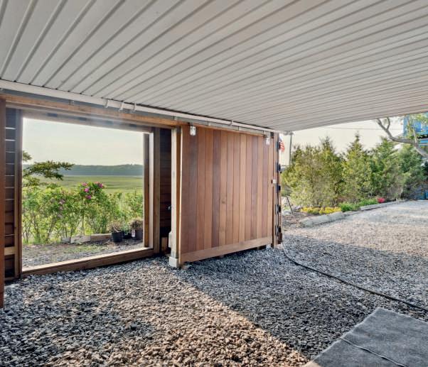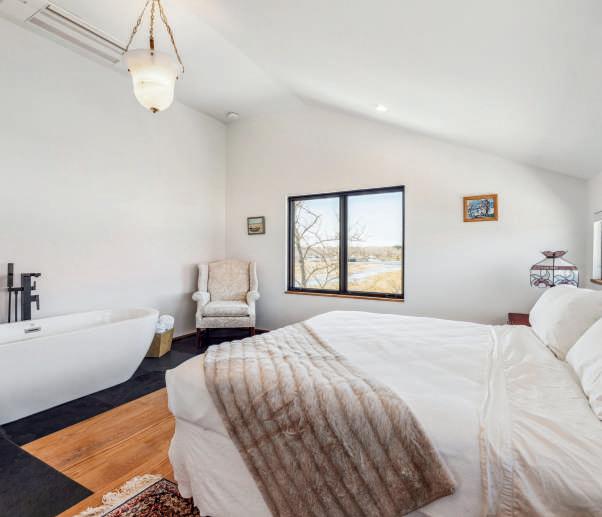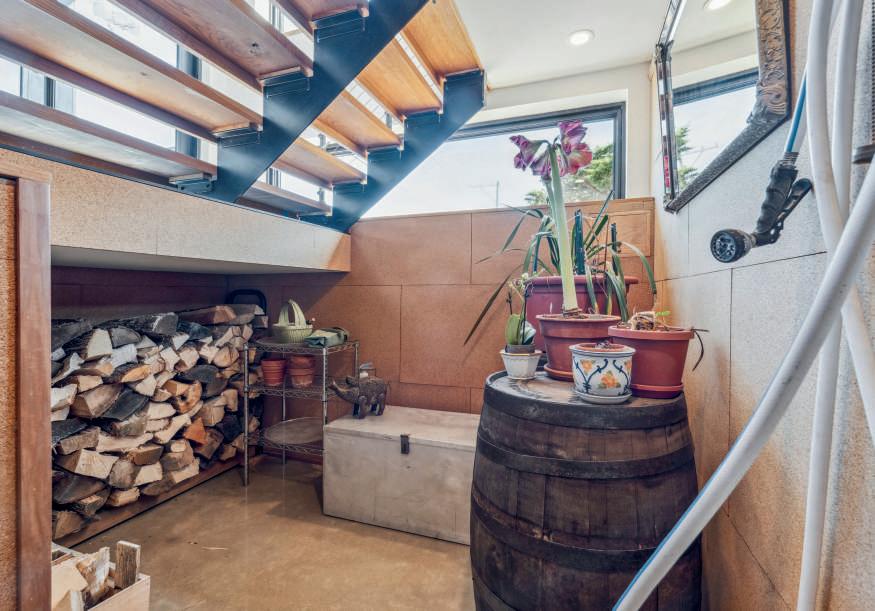 Designed for gatherings and relaxation, the lower level offers a warm, inviting space perfect for wine tastings and game nights. An 800+ bottle temperaturecontrolled wine cellar and a second kitchen make entertaining effortless. Sustainable details like cork-insulated walls and polished concrete floors enhance comfort and efficiency year-round. French doors open to expand the space, seamlessly blending indoor and outdoor living. The adjoining greenhouse bathes in natural light, creating a bright retreat with superior climate control for all seasons.