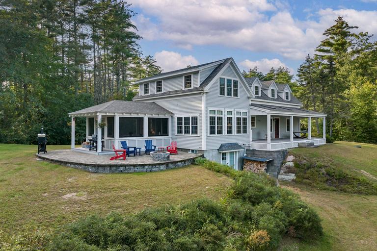 Welcome to Bailey Point, peacefully resting on a picturesque 6-acre peninsula, offering over 1000 feet of waterfrontage, providing an unparalleled sanctuary Impeccably restored, this charming 3-bedroom farmhouse exudes timeless elegance and offers endless opportunities Wide pine floors and exposed beams showcase the historic character Discover built-in shelving, an inviting entryway, and a stone fireplace that adds to the charm The kitchen impresses with tall custom cabinets, a walk-in pantry, and ample storage space. The farmers' porch, a perfect spot to savor morning coffee while taking in the breathtaking views of the water. Feel the embrace of nature in the enclosed porch, a space that invites you to unwind and connect with the outdoors Outdoor living has endless possibilities with a private dock awaiting your waterfront adventures, while a cozy sleeping shed by the lake beckons for lazy afternoons by the water Enjoy dining on the outdoor patio, gather around the firepit under the starry sky, or tend to the raised garden beds Additional amenities include an insulated walk-out basement, central AC for year-round comfort, & a whole-house generator for peace of mind The detached barn with a sturdy Steel I beam Experience the tranquility and charm of Bailey Point, where modern comforts meet rustic elegance in a harmonious blend of nature and luxury Your waterfront retreat awaits