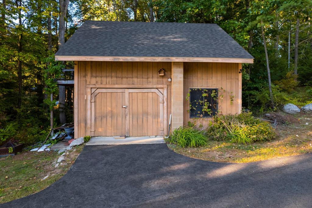 ● Detached shed (once used as bunkhouse) with lake front deck 816 +/ square feet (Siding that matches the house is in the basement to re side the Bunkhouse) ● Storage below ● Overflow sleeping above ● Convenient closed outdoor storage for Kayaks and lake gear ● Private dock ● Boat lift (negotiable.)