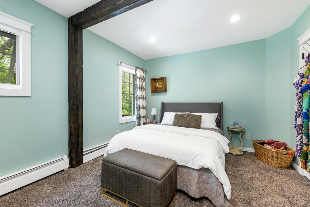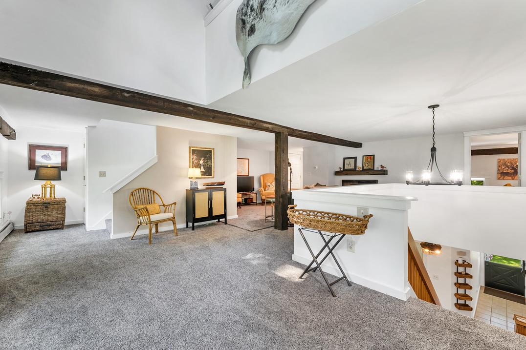 Generous sized three level condo with cathedral ceilings, exposed beams and skylights. Stainless kitchen appliances with quartz countertops; new carpet on the 2nd and third floor Wood burning fireplace and wood floors in the living area First floor bedroom en suite bathroom Lovely views from the back deck of the grounds and in ground pool Plenty of room for family and friends this is well priced in today's market