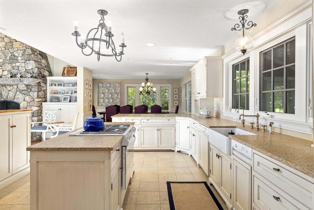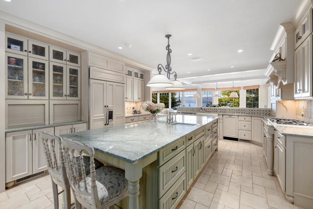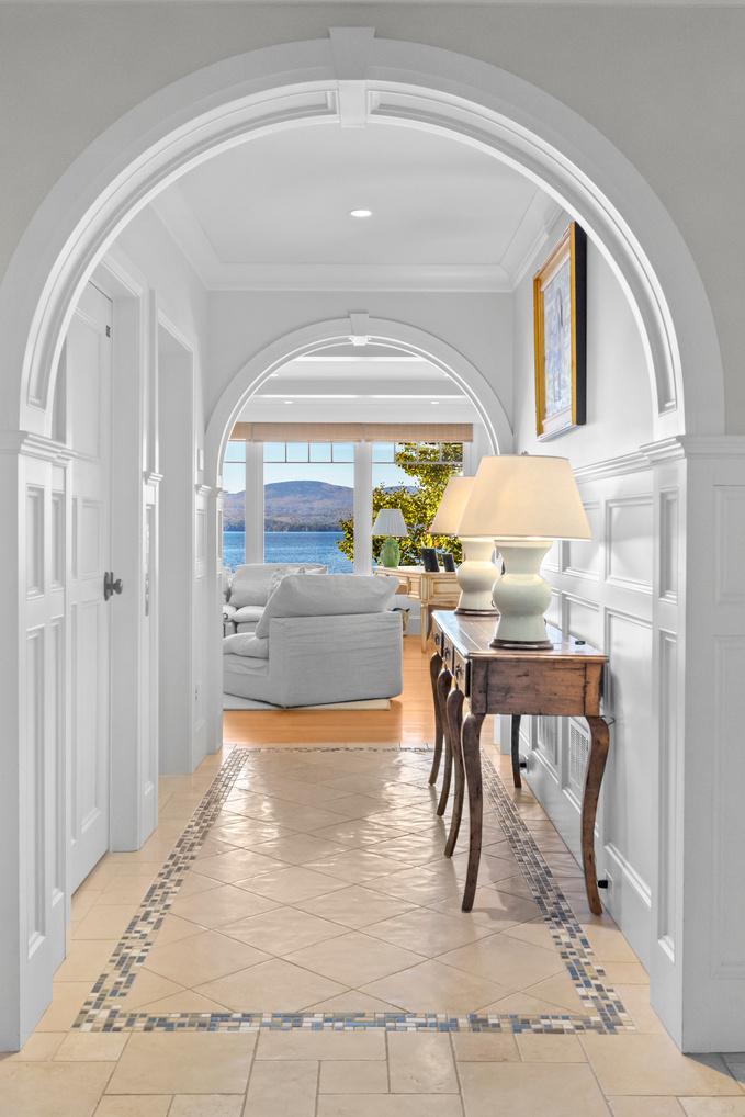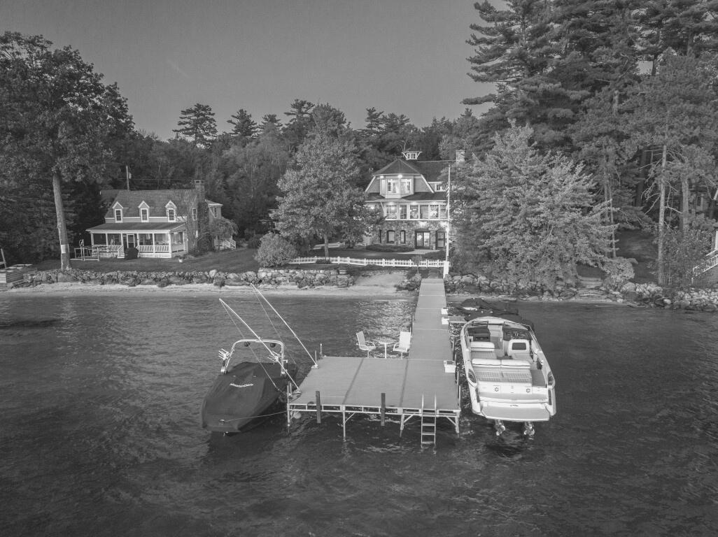 The pride in craftsmanship is apparent from the moment you enter this warm and inviting home. As you enter the home, you are greeted with a commanding view of the Belknap Mountains across the broads of Lake Winnipesaukee, stunning in every season The foyer is your first introduction to the custom woodwork, and attention to detail that can be found throughout the property Mahogany details such as curved banisters and custom millwork can be found throughout the property The expansive kitchen is just to your right as you enter including an abundance of custom cabinetry, Viking/Sub Zero/Bosch appliances and stunning green granite countertops. The unique custom tile work including limestone floors includes culinary and New England themes for the backsplashes Bathed in light is the adjoining dining area as well as the formal living room complete with wood burning fireplace Directly off of the dining area is an attached enclosed porch complete with a Viking grill This room offers direct access to the lakefront yard, dock and swimming area The entire second floor is the primary suite Currently one space is being used as a bedroom but was designed as an office space complete with a fireplace The primary bath has all the bells and whistles including double vanity sink, as well as a custom hand painted mural. This takes you into the attached walk in closet with its own dedicated laundry machines. The bedroom has a private lakeside deck and a large cupola for extra natural light The full walkout lower level has a lot to explore Starting with the large light and bright family room with direct access to the lake this space has a kitchenette and a wood burning fireplace There are two more large bedrooms on this level as well as a full bath The lake side is expertly landscaped and includes a grassy fenced in area, an outdoor kitchen, outdoor shower, a stone lakeside patio, sandy beach, a large dock including a double jet ski lift and room for 4+ boats There is a whole house BOSE entertainment system that includes all weather outdoor speakers. All levels of the home are accessed by an elevator A whole house generator is also included During the winter months, enjoy your heated driveway and walkway Attention to detail can be found throughout this elegant lakefront home
