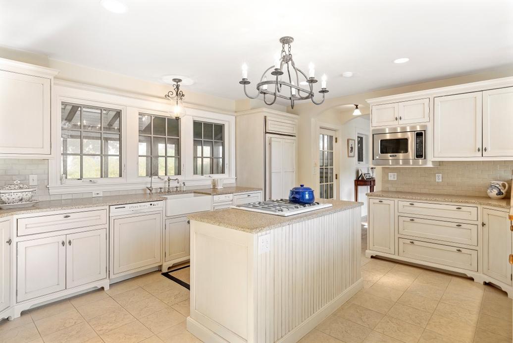 Traditional sandy beach and bottom Outdoor kitchen / grilling area