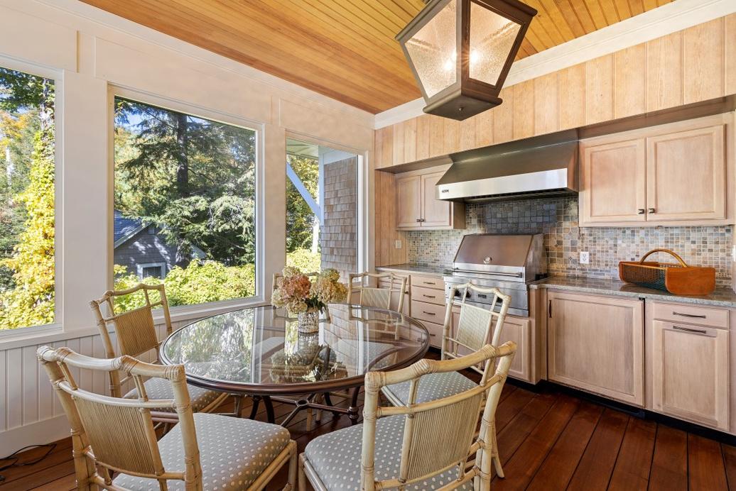 Attached three season porch with built in Viking grill