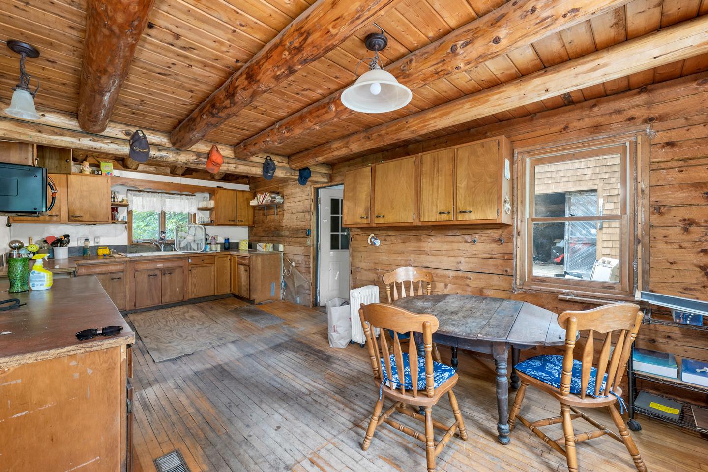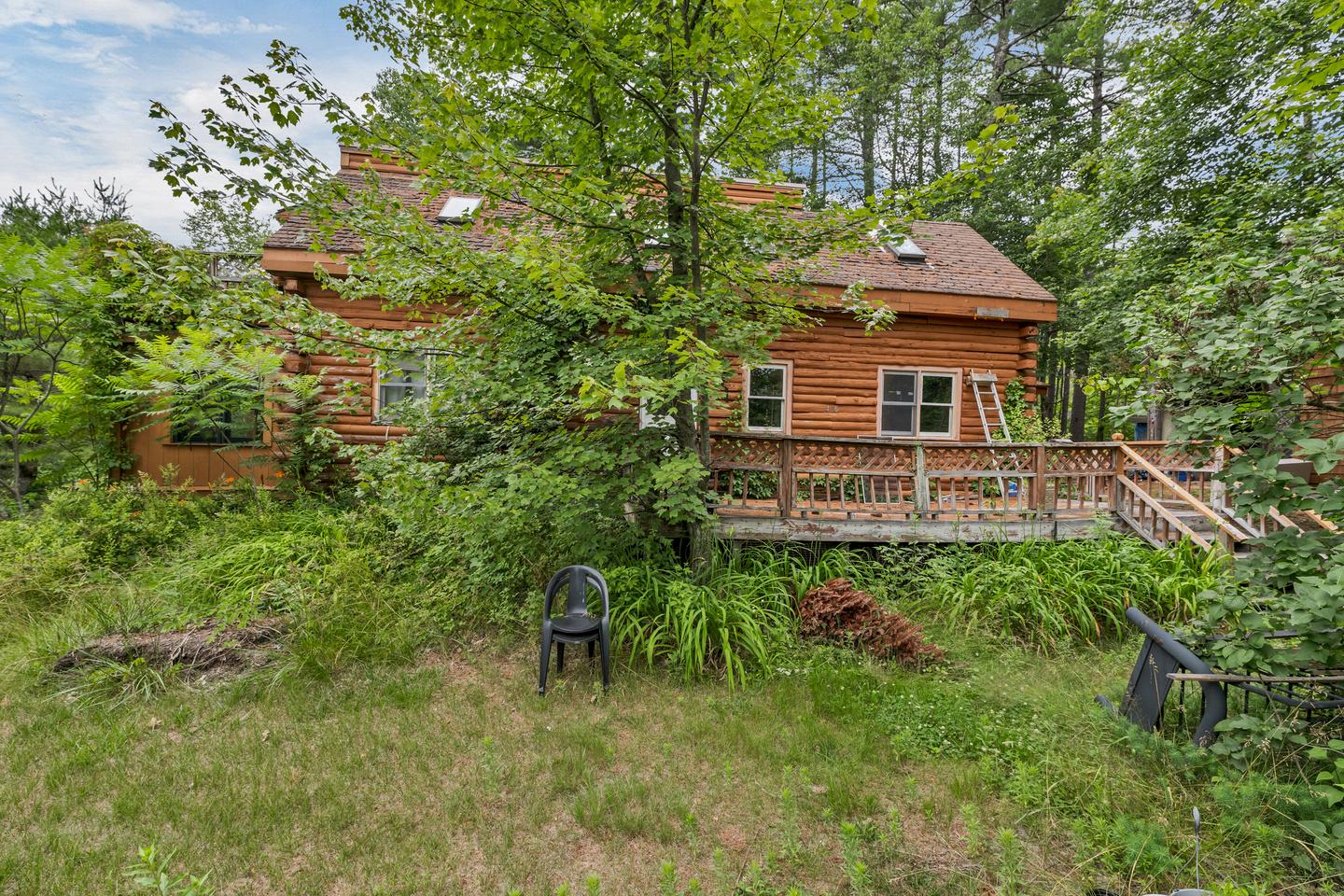Investor Special – Log Cabin with Belleau Lake Access! Here's your chance to own a charming 1991 log cabin nestled in the heart of the Lakes Region! This 2-bedroom, 2-bath home offers over 1,400 sq ft of rustic living space and is ready for your vision and updates. The 1.5-story layout features an open-concept main floor with soaring ceilings and a balcony overlooking the spacious living area below. Upstairs, you'll find two bedrooms and a full bath. Set on a private lot with direct access to Belleau Lake, outdoor enthusiasts will love the nearby walking trails and the ability to launch kayaks or canoes just steps from the property. A detached barn adds extra storage or workshop potential. Whether you're looking for a year-round residence, vacation getaway, or investment opportunity, this property is brimming with potential. Bring your ideas and make this classic log home shine. A rare opportunity to get into Wakefield’s desirable lake community at an affordable price!