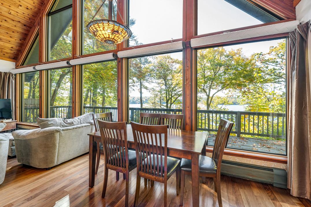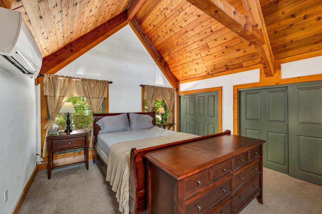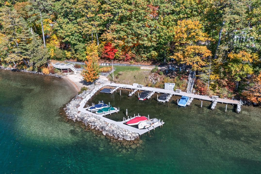 Enjoy 4 seasons of Winter Harbor views from this spacious Wolfeboro escape. An open floor plan combines the kitchen, dining and living area creating truly a Great Room with floor to ceiling windows and a wood burning fireplace The first floor has 2 bedrooms that share a full bath The second floor is the entire primary suite The unfinished basement has plenty of potential for a family room Take in the beautiful sunsets over the White Mountains and Gunstock from the oversized wrap around deck on the lake side of the home. There is also a detached garage with room for storage above. Extensive weekly rental history available upon request. PLEASE NOTE: This is not a waterfront property The shared private beach is abutting this property that as a property owner you have full rights to use This property currently does not have docking or mooring rights