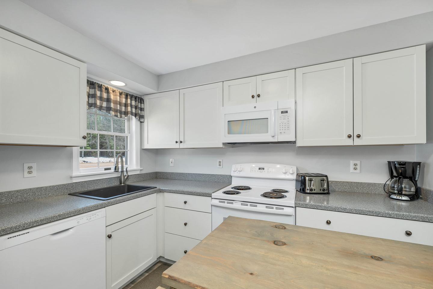 The finished walk-out basement offers versatility, serving as either a family room or additional bedroom, complete with a spacious extra bathroom. French doors lead to a weatherproofed deck/patio area, ideal for outdoor gathering sand BBQs, extending to a lush meadow and granting access to the condo association beach Conveniently located near popular ski destinations, offering skiing, mountain biking, and a summer concert series, this condo presents an ideal four-season retreat. Enjoy easy access to North Conway, and its abundance of amenities, making it a perfect getaway for outdoor enthusiasts and those seeking relaxation alike The unit is fully furnished, turn key/move in ready