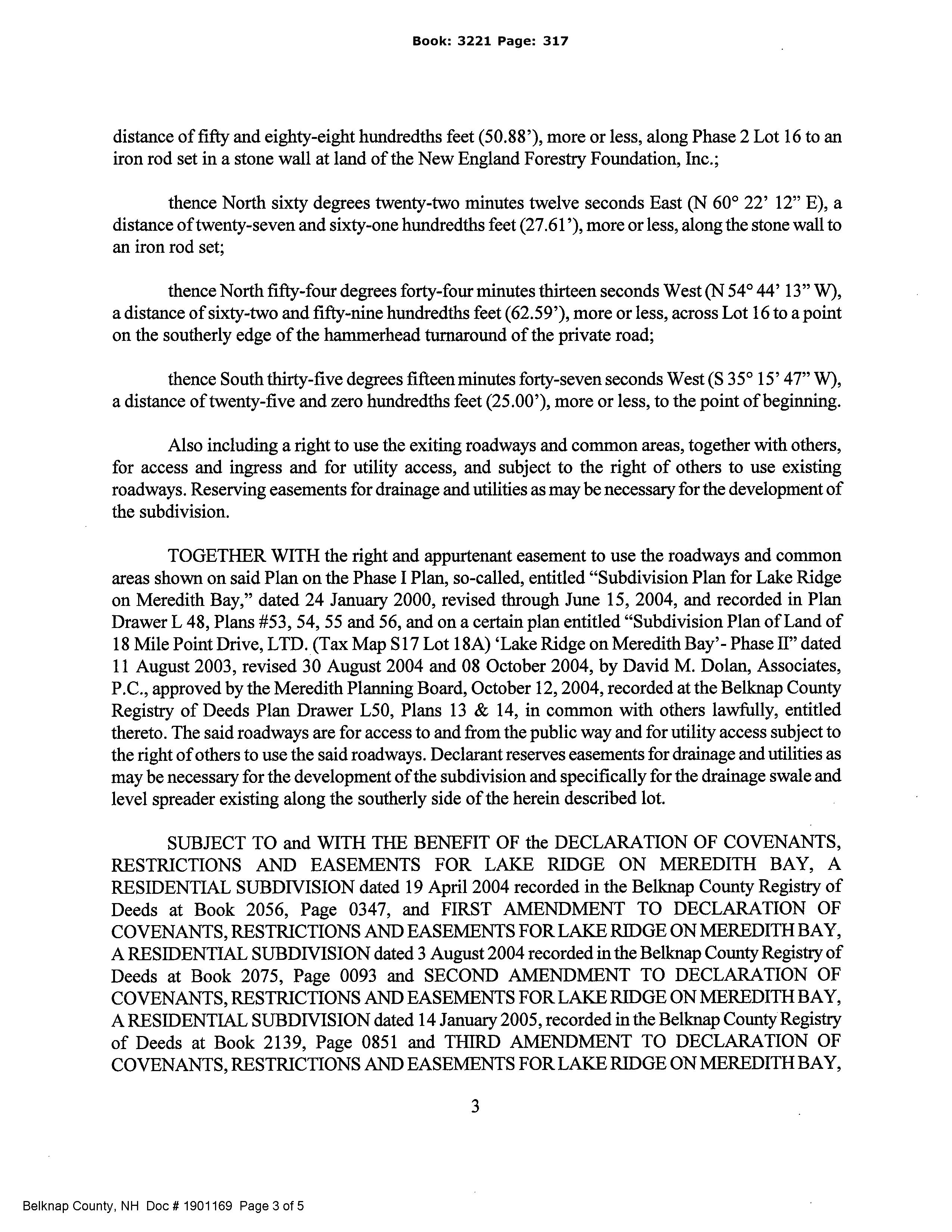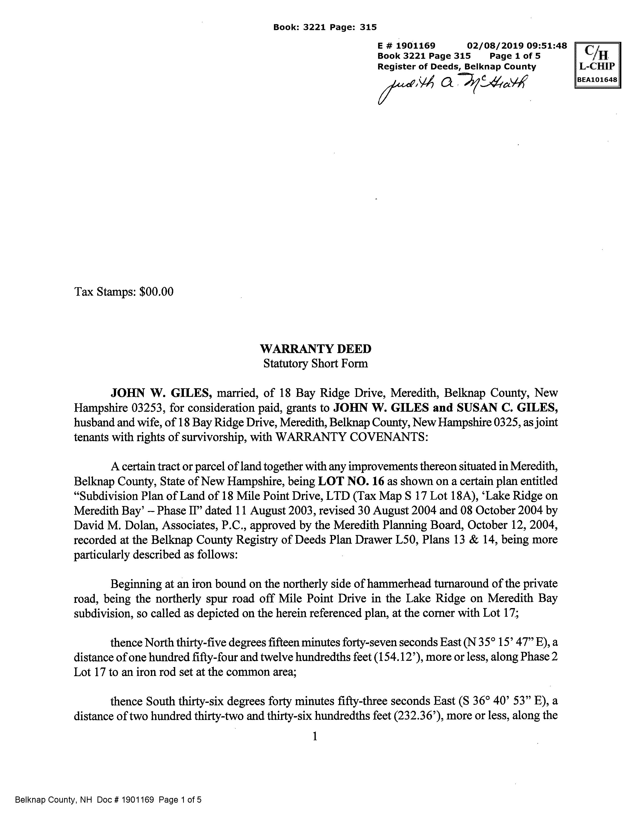 John W. Giles and Susan C. Giles 18 Bay Ridge Drive, Meredith, NH 03253 Lake Ridge