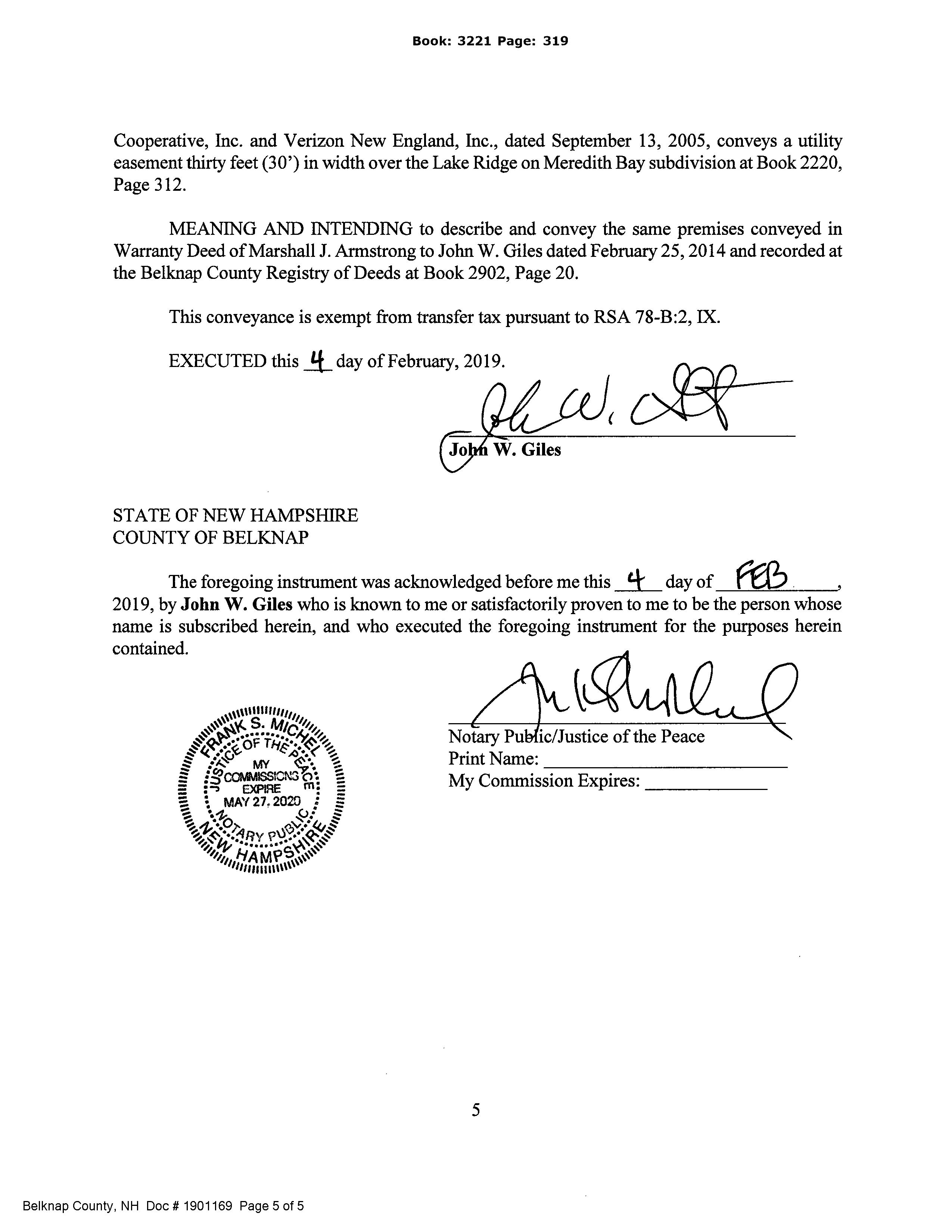 W. Giles and Susan C. Giles 18 Bay Ridge Drive, Meredith, NH 03253