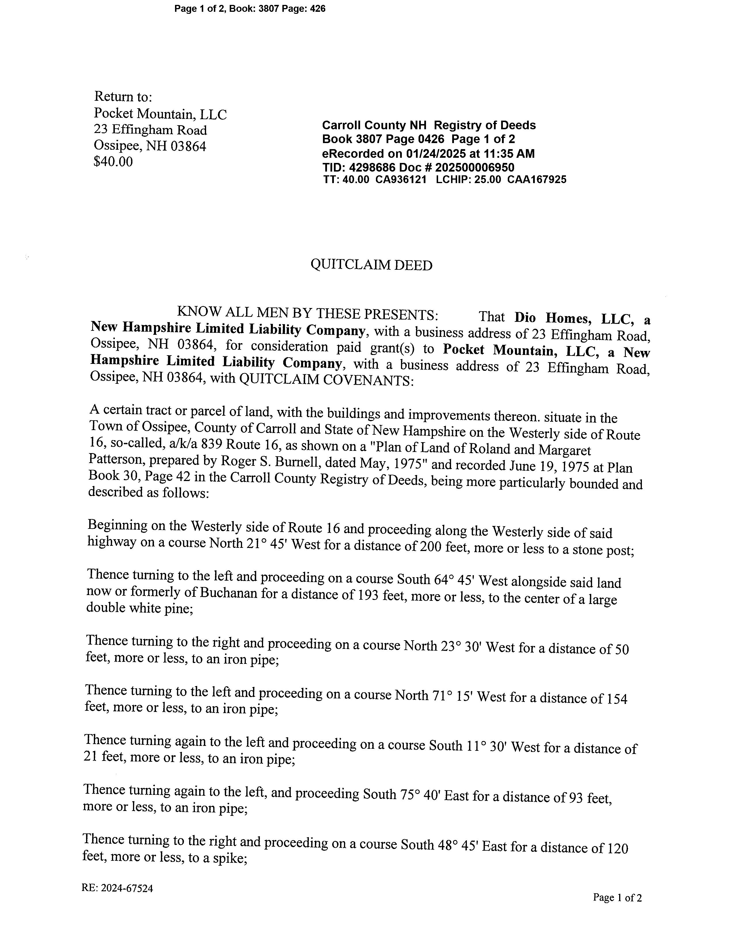 POCKET MOUNTAIN LLC 23 EFFINGHAM RD OSSIPEE, NH 03864