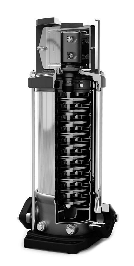 Die vertikalen ein- oder mehrstufigen Kreiselpumpen sind zum Pumpen von sauberen oder leicht aggressiven, wässrigen Medien konzipiert. Ansaugung und Auslass der Pumpe sind in Reihe angeordnet, wodurch sich die Pumpe leicht installieren lässt.