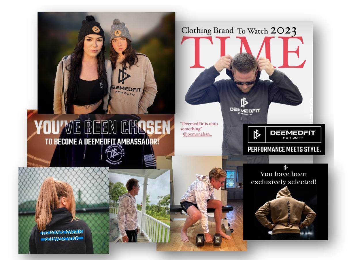 DeemedFit’s mission is to increase mental health awareness and support nonprofits that provide free counseling and mental health services to active-duty service members, veterans, and first responders, such as Tunnel to Towers, Beyond the Badge NY, PS I LOVE YOU, and American Foundation for Suicide Prevention. When they were founded in 2023, that earned them Time Magazines’ Clothing Brand to Watch recognition. I’m now proud to be a part of their mission.