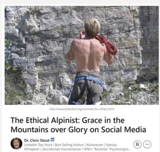 My LinkedIn Top Voice article on Ethics and Climbing.