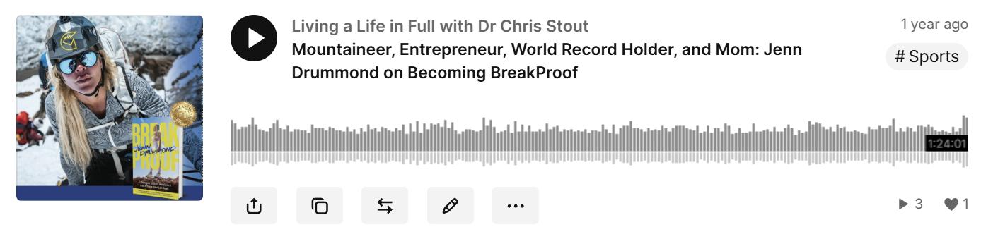 I recently was pleasantly surprised to see Jenn Drummond as a GORUCK Brand Ambassador, as I know Jenn well and had her as a guest on my podcast, Living a Life in Full. (A quick note about the show ā weāre in our 8th season, ListenNotes ranks us in the top 5% of podcasts, weāre on 65+ Platforms, and we have a 4M+ aggregated audience reach ā more samples below.)